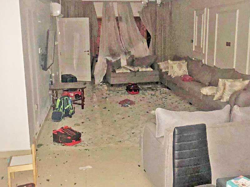 آثار الدمار على منزل طالته شظايا التصدي للاعتداء الحوثي في الدمام ليل السبت - الأحد (واس)