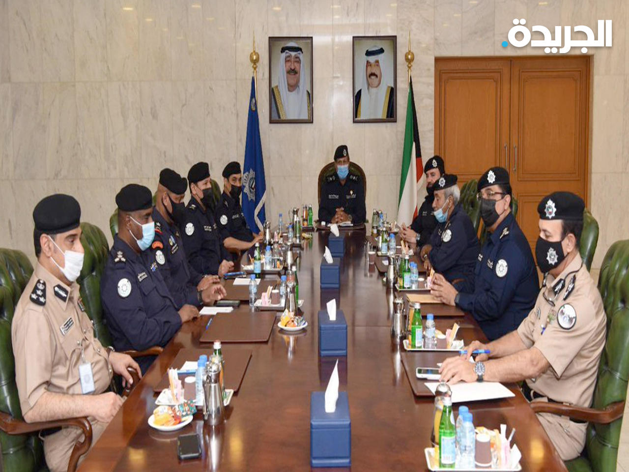 وشدد على ضرورة الاستمرار في بذل الجهد ووضع الخطط الأمنية لتأمين جميع المحافظات، والتواجد الأمني في جميع المناطق، وتفعيل دور رجل الأمن في المخافر، وتسيير الدوريات في المناطق السكنية، وتكثيف الحملات على الأسواق العشوائية، ومخالفي قانون الإقامة (التغيب - انتهاء الإقامة)، وتنسيق الجهود في الحملات مع الجهات الحكومية والالتزام بالضبط والربط العسكري والاشتراطات الصحية والوقائية.وأكد على ضرورة الاهتمام بكافة البلاغات والتواصل مع الجهات المنوطة بها للتعامل السريع معها والارتقاء بمستوى المخافر وتزويدها بكافة احتياجاتها لتقديم أفضل الخدمات للجمهور الكريم.وقال إن المرحلة الراهنة تتطلب العمل كفريق واحد وبفكر أمني ينطلق من التجديد وإعادة النظر في الإجراءات الأمنية أولاً بأول، بما يتناسب مع المستجدات الأمنية الراهنة ويحقق مصالح البلاد، مشدداً على تطبيق القانون على الجميع بمسطرة واحدة.ووجه بضرورة التواجد الميداني لكافة المستويات الإشرافية والقيادية لمتابعة سير الأداء الأمني وتنفيذ الخطط الأمنية بكل دقة وإتقان، والالتزام بحسن معاملة المواطنين والمقيمين ومراعاة البعد الإنساني عند التعامل معهم أثناء تنفيذ الخطط والإجراءات الأمنية وفتح قنوات تواصل معهم، بما يضمن تفاعلهم الإيجابي لتحقيق الرسالة الأمنية.واختتم الفريق الشيخ فيصل النواف، مؤكداً على أهمية الالتزام باليقظة والجاهزية، منوها بقدرة أبناء المؤسسة الأمنية على القيام بالمهام المنوطة بهم بكفاءة واقتدار وفي كل الظروف