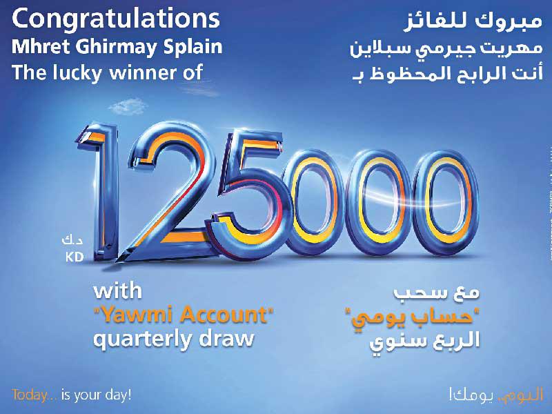 أعلن بنك برقان، أمس، اسم الفائز الجديد في سحب حساب يومي ربع السنوي، إذ فاز بجائزة نقدية قيمتها 125.000 دينار، مهريت جيرمي سبلاين الذي عبّر عن سعادته بالفوز.وللتأهل للسحوبات ربع السنوية يتعين على العملاء ألا يقل رصيدهم عن 500 دينار لمدة شهرين كاملين قبل تاريخ السحب، كما أن كل 10 دنانير تمثل فرصة واحدة لدخول السحب. وإذا كان رصيد الحساب 500 دينار فما فوق فسيكون صاحب الحساب مؤهلاً للدخول في السحوبات اليومية وربع السنوية.