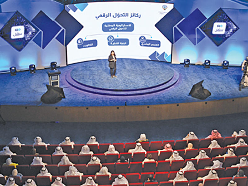 وقال: عندي رجاء لأهل الكويت، فأبناؤكم الذين يقومون بعمل جبار لإنجاح التحول الرقمي يحتاجون الى الكلمة الطيبة، فمن السهل أن نكون سلبيين، لكن النجاح صعب، وأطلب من أهل الكويت أن يكونوا دروعا وداعمين لأبنائهم، وبإذن الله يسمعون منكم كلاما طيبا ونقدا بناءً.وأشار الجابر الى أنه سيكون لكبار السن وذوي الهمم الاهتمام الكبير في الخدمات الحكومية خلال التطبيق.بدورها، قالت وزيرة الأشغال وزيرة الدولة لشؤون الاتصالات، د. رنا الفارس، إن الفعالية باكورة فعاليات وزارة شؤون الاتصالات، ونسعى الى 3 أمور تؤكد جدية الحكومة برقمنة الخدمات وتسهيلها على المواطن والمقيم، وتعزيز التحول الرقمي، وبيان الأثر الإيجابي للتحول الرقمي وتحويل معاملاتنا الورقية الى رقمية.وأضافت، في كلمة لها بالمناسبة، أن ثمة 3 ركائز لتطوير التنمية المستدامة، تكمن في العنصر البشري، وهو رأسمال أي دولة، وتسعى الدول لاستحداث البرامج وتشجع أبناءها على هذه البرامج.وتابعت: الركيزة الثانية هي البنية التحتية، فلا توجد دولة في العالم لا تكون لديها بنية تحتية قوية، وأقصد البيانات والمعلومات، أما الركيزة الثالثة فتتمثل في تطوير التنمية المستدامة، ووجود منصة لتبادل المعلومات والبيانات بالرقم المدني لتقديمها للجهات لتسهيل إجراء المعاملات للمواطنين.
