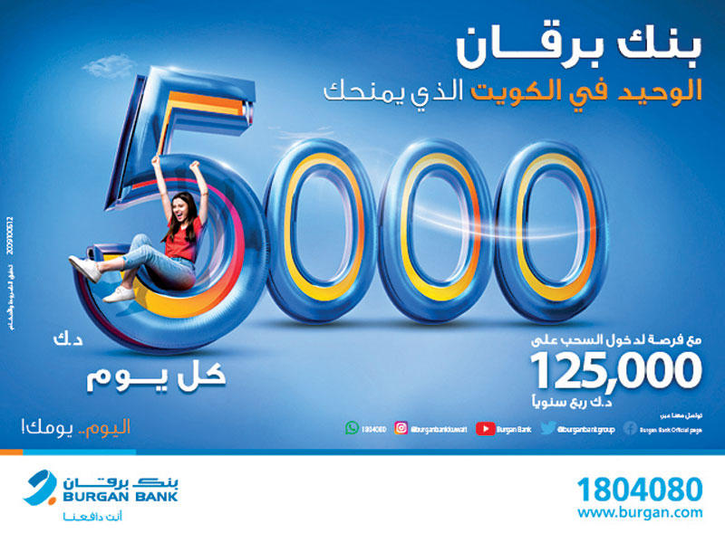 ويوفر البنك سحبا ربع سنوي لحساب «يومي» للفوز بجائزة نقدية بقيمة 125.000 دينار.