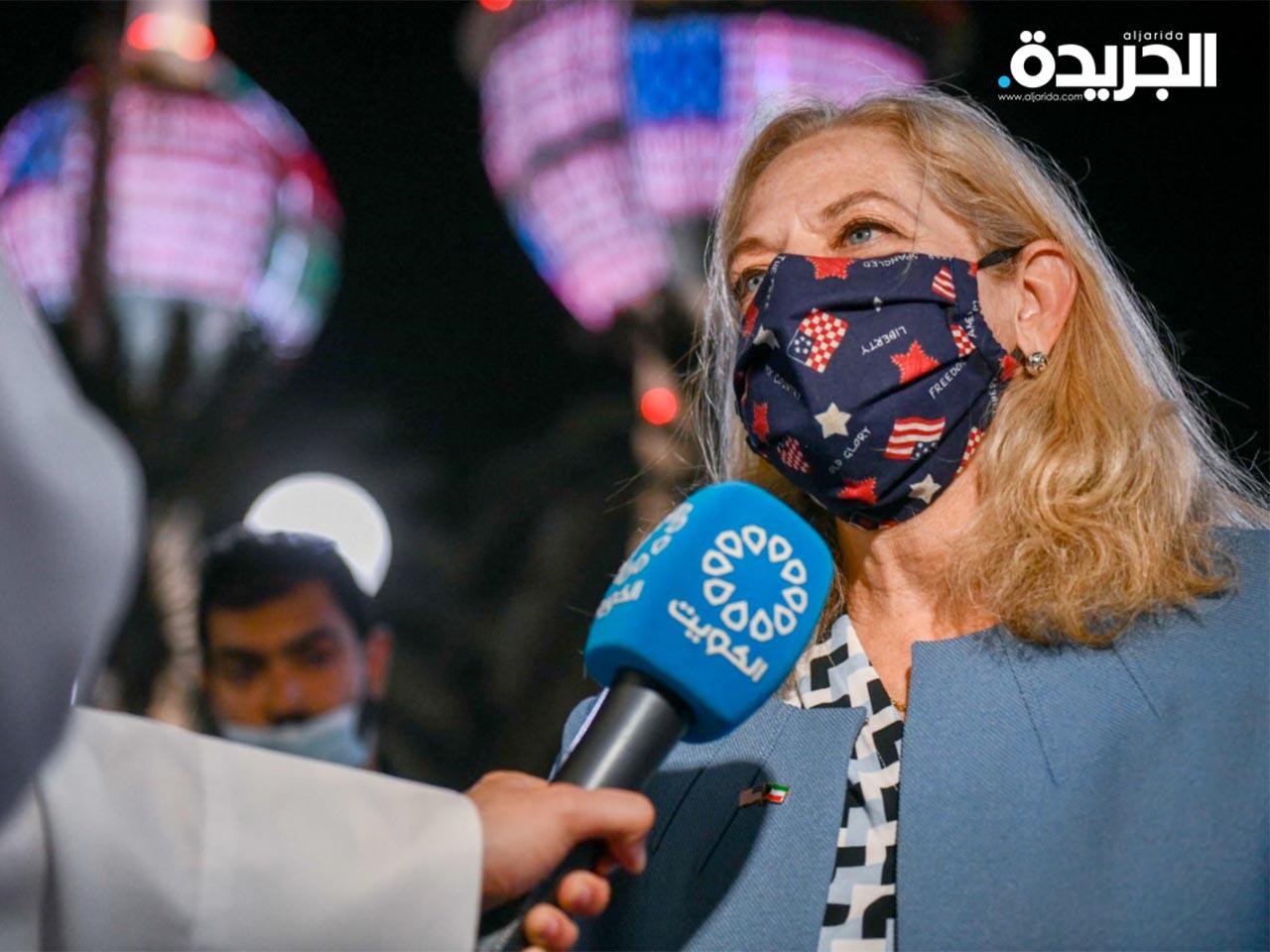 وأعربت عن التطلع لبدء عام جديد «نقوي فيه العلاقات الأخوية والشراكة بين البلدين وتم اختيار أبراج الكويت كموقع لهذه المناسبة كونه معلم من معالم الكويت ليتم وضع علم البلدين عليها».ونوهت بالعلاقات «الجيدة جداً» بين البلدين، مشيرة إلى أن «الرئيس الأميركي جو بايدن اتصل بسمو أمير البلاد الشيخ نواف الأحمد الجابر الصباح قبل أيام كما استقبل سموه وزير الخارجية الأميركي أنتوني بلينكن في يوليو الماضي كما التقى بلينكن أيضاً سمو ولي العهد الشيخ مشعل الأحمد الجابر الصباح والقيادة الكويتية للبحث في سبل تطوير العلاقات الكويتية الأمريكية».ولفتت أيضاً إلى الزيارة التي قام بها وزير الدفاع الأميركي لويد أوستن إلى دولة الكويت قبل بضعة أسابيع بهدف تقوية العلاقة.