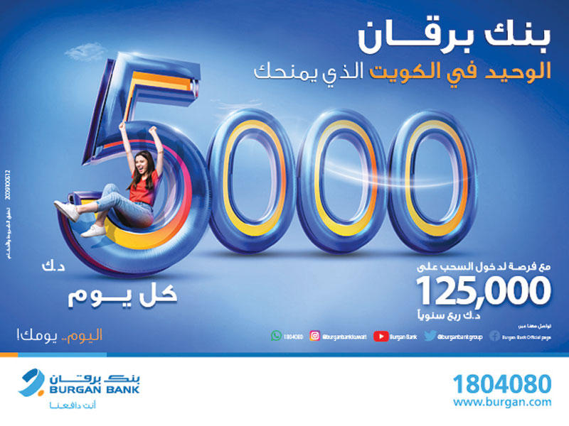 ويوفر البنك سحبا ربع سنوي لحساب "يومي" للفوز بجائزة نقدية بقيمة 125,000 دينار.