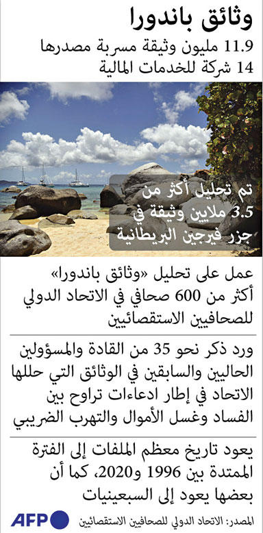 وكان تحقيق نشره «الاتحاد الدولي للصحافيين الاستقصائيين»، كشف أن الكثير من قادة الدول، أخفوا ملايين الدولارات عبر شركات خارجية (أوفشور) في ملاذات ضريبية.ويستند التحقيق الذي أطلق عليه اسم «وثائق باندورا»، في إشارة إلى أسطورة صندوق باندورا الذي يحوي كل الشرور، وساهم فيه نحو 600 صحافي، إلى نحو 11.9 مليون وثيقة، ما يعادل نحو 2.94 تيرا بايت، مصدرها 14 شركة للخدمات المالية في دول منها قبرص وبيليز وإحدى الدول العربية وسنغافورة وسويسرا وجزر فيرجين.وسلط الضوء على أكثر من 29 ألف شركة «أوفشور».وورد ذكر نحو 35 من القادة والمسؤولين الحاليين والسابقين في الوثائق التي حللها «الاتحاد» في إطار ادعاءات تراوح بين الفساد وغسل الأموال والتهرب الضريبي.وجاء في هذه الوثائق أن العاهل الأردني أسس سلسلة من شركات الـ»أوفشور»، 30 منها على الأقل في بلدان أو مناطق تعتمد نظاماً ضريبياً متساهلاً.ومن خلال هذه الشركات اشترى 14 عقاراً فخماً في الولايات المتحدة والمملكة المتحدة بقيمة تزيد على 106 ملايين دولار.ونفى رئيس وزراء ساحل العاج باتريك أتشي أيضاً الذي كان يدير شركة في جزر الباهاماس حتى 2006 على الأقل وفقاً للتحقيقات، الاثنين أن يكون قام بأي «عمل غير قانوني».وأظهرت الوثائق أيضاً أن رئيس وزراء تشيكيا آندريه بابيس الذي يخوض انتخابات في وقت لاحق من الأسبوع الحالي، تخلف عن التصريح عن شركة استثمار «أوفشور» استخدمها لشراء قصر بيغو، وهو دارة شاسعة في موجان جنوب فرنسا بسعر 22 مليون دولار.وعلق بابيس في تغريدة «لم أقدم يوماً على أي فعل غير قانوني. لكن هذا لا يمنعهم من محاولة التشهير بي والتأثير على الانتخابات التشريعية التشيكية» المقررة الجمعة والسبت.وأودع رئيس الإكوادور غييرمو لاسو أموالاً في صندوقين مقرهما في ولاية داكوتا الجنوبية في الولايات المتحدة.وأقام «الاتحاد الدولي للصحافيين الاستقصائيين» روابط بين أصول في شركات «أوفشور» و336 من قادة الدول والمسؤولين السياسيين الكبار ومن بينهم سفراء ووزراء الذين أنشأوا نحو ألف شركة، أكثر من ثلثيها في جزر فيرجين البريطانية.واعتبر مدير «الاتحاد الدولي للصحافيين الاستقصائيين» جيرارد رايل في مقطع فيديو، أن التحقيق «يظهر أن الأشخاص الذين يمكنهم وضع حد لسرية الشركات الأوفشور، لوضع حد لما يجري عبرها، يستفيدون منها أيضاً». وأضاف «الأمر يتعلق بتريليونات الدولارات».