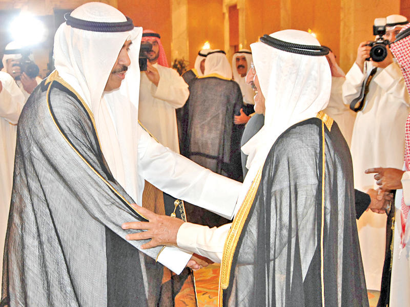 مع الأمير الراحل الشيخ صباح الأحمد بعد حلف القسم الدستوري للحكومة عام 2008