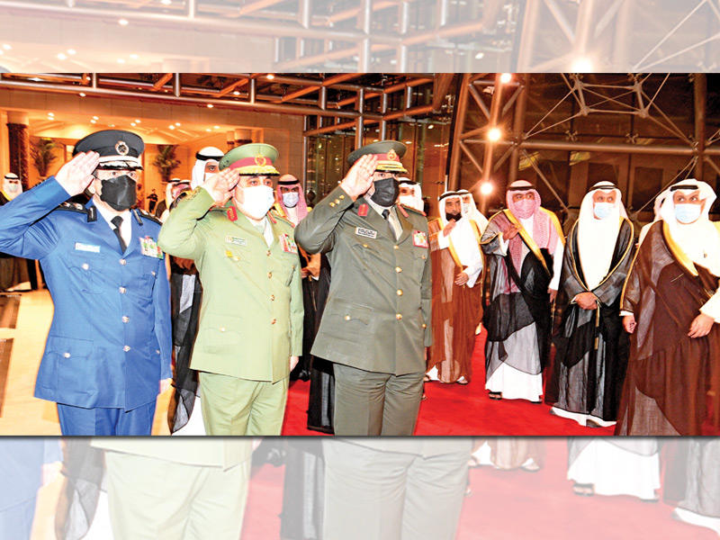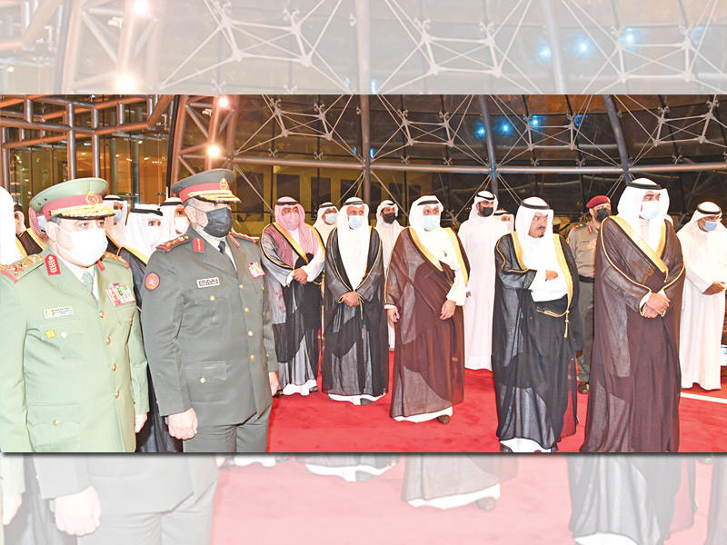 الأمير يحيي مستقبليه لدى وصوله... ويبدو مرزوق الغانم وناصر المحمد