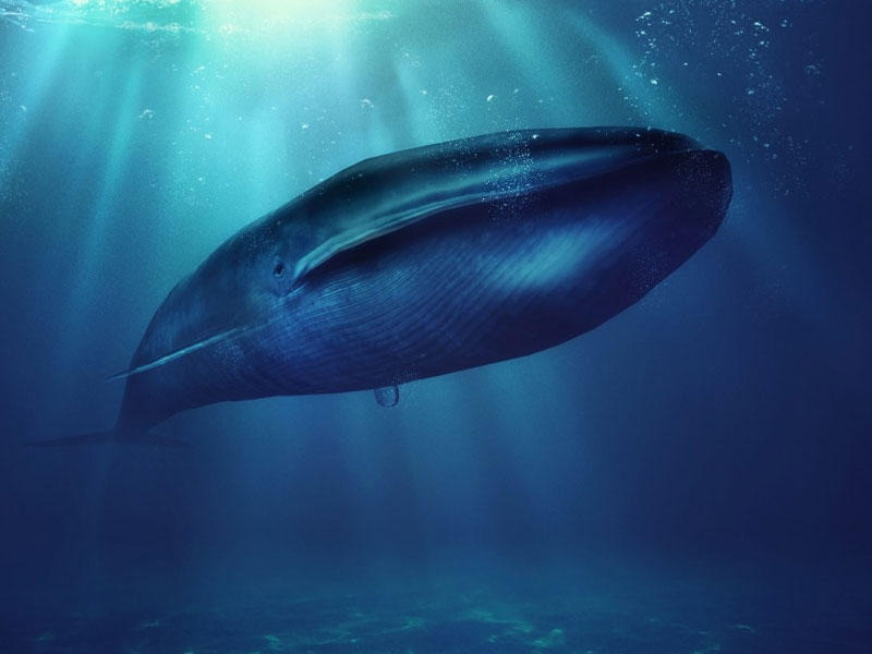 ومن الممكن أن يصل طول الحوت الأزرق، وهو أكبر من الديناصورات الضخمة، إلى 33 متراً ووزنه إلى 200 طن، ومعظم الحيتان البالينية لا تأكل في كل المواسم، ولها دورة جوع سنوية، فهي تأكل لحوالي 100 يوم في السنة، وعادة في موسم التكاثر الصيفي، فيما تأكل القليل في بقية العام.