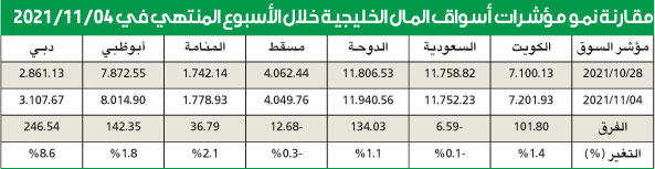 أسبوع إيجابي لأسواق الإمارات والبحرين والكويت وقطر... وتراجعات للسعودية وعُمان