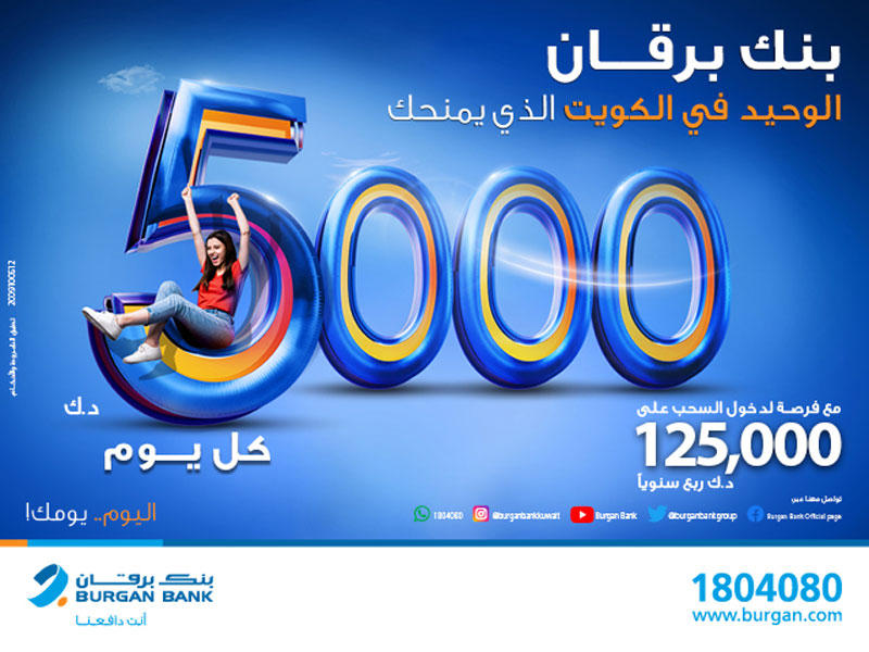 أعلن بنك برقان أسماء الفائزين في السحوبات اليومية على حساب يومي، وقد فاز كل واحد منهم بجائزة 5000 دينار. والفائزون هم:مأمون عبدالله حسن، علي عبدالرحمن السالم، ناصر علي الجلاوي، إيمان هاشم معرفي وفرح ميثم بهبهاني.