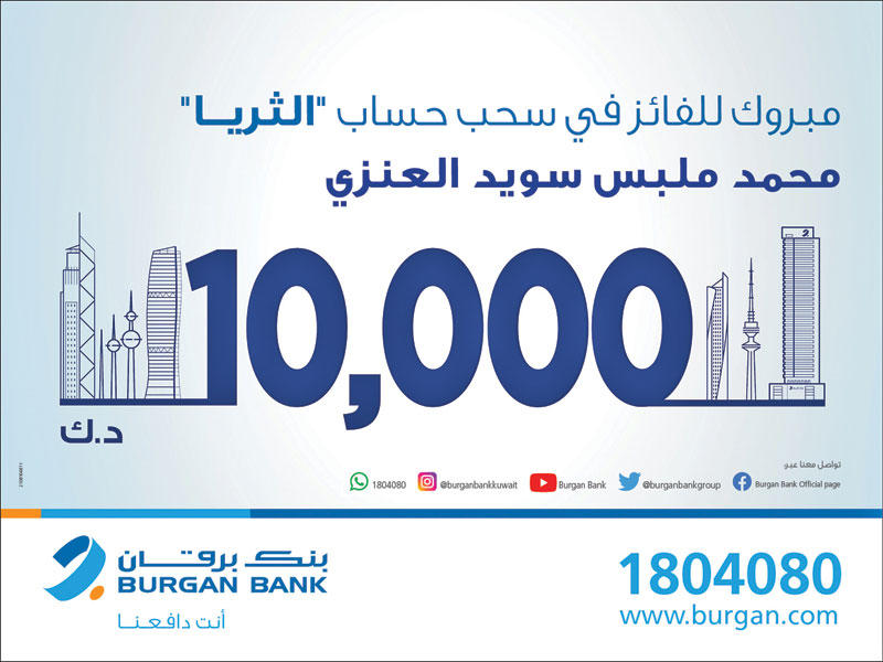 بنك برقان يعلن الفائز بسحب «الثريا للراتب»