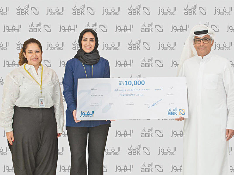 أعلن البنك الأهلي فوز محمد عبدالصمد وحيدي في السحب الأسبوعي الأول لحساب التوفير "الفوز"، بجائزة نقدية قدرها 10.000 دينار، والذي أقيم تحت إشراف وزارة التجارة والصناعة، وتم إعلان اسم الفائر على البث المباشر على محطة نبض الكويت FM 88.8 يوم 8 الجاري.وقال الرئيس التنفيذي للبنك لؤي مقامس: "يسرني بالنيابة عن "الأهلي" أن أتقدم بالتهنئة إلى وحيدي باعتباره الفائز الأول في سحب الفوز"، مشيرا إلى أن "طرح حساب التوفير "الفوز" يأتي في إطار التزامنا بمساعدة العملاء على تحقيق أهدافهم المالية، بالإضافة إلى إننا نقدم لهم في الوقت ذاته مكافآت وحوافز قيّمة".