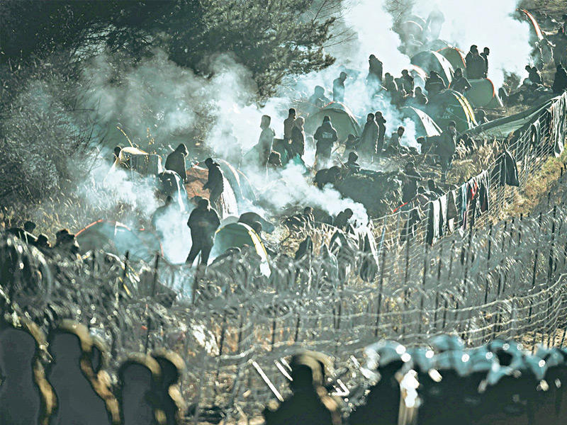 في هذه الأثناء، طالب رئيس الوزراء البولندي الاتحاد الأوروبي بعقد قمة لمناقشة الوضع الراهن على حدود التكتل مع بيلاروس في أقرب وقت ممكن.وكشفت تقارير أن مورافيتسكي لا يريد الانتظار حتى انعقاد القمة العادية للاتحاد الاوروبي، المقررة في ديسمبر المقبل، ويستعجل عقد لقاء الزعماء وإن عبر الانترنت.ووسط حديث عن استعداد التكتل لمعاقبة شركة الطيران الحكومية البيلاروسية، قال عقب لقائه مع رئيس المجلس الأوروبي شارل ميشيل: «يجب أن نتطلع إلى منع الرحلات الجوية من الشرق الأوسط إلى بيلاروس»، واصفا ما تفعله بيلاروس بـ«إرهاب الدولة». وجاء ذلك بعد أن زار رئيس الوزراء البولندي ووزير الدفاع ماريوس بلاشتشاك نقطة تفتيش «كوزنيتسا» على الحدود مع بيلاروس، حيث يوجد في المنطقة مخيم للاجئين. ورأى مورافيتسكي أن نقطة التفتيش على الحدود تمثل «خط المواجهة الأول».وترفض وارسو السماح للمهاجرين بدخول أراضيها، وأرسلت مئات الجنود كتعزيزات إلى الحدود في الأسابيع القليلة الماضية، فضلا عن إقامة سياج من الأسلاك الشائكة، في محاولة لوقف أي محاولات من جانب المهاجرين لاختراق الحدود.وأمس الأول، أعربت مفوضية الأمم المتحدة لشؤون اللاجئين، والمنظمة الدولية للهجرة، عن القلق إزاء أوضاع المهاجرين على الحدود بين بيلاروس وبولندا ولاتفيا وليتوانيا، كما نددتا بـ«استغلال المهاجرين واللاجئين لتحقيق غايات سياسية».احتجاز واتهام