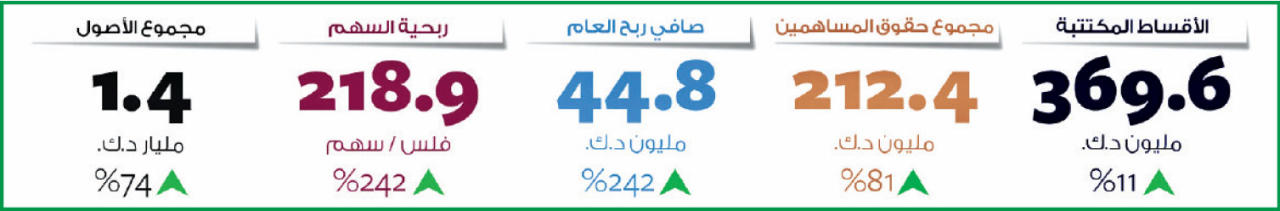 ارتفاع الأقساط المكتتبة بنسبة 10.6% لتصل إلى 369.6 مليون دينار