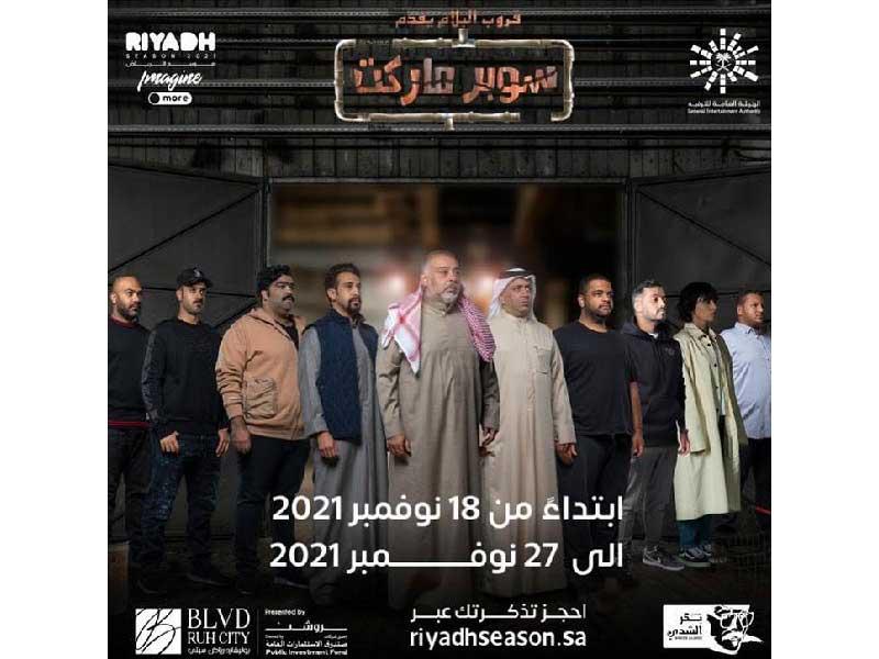 وأوضح أن عروض المسرحية تنطلق بعد غدٍ حتى 27 الجاري على مسرح بكر الشدي، بمشاركته إلى جانب الفنانين: أحمد العونان، خالد المظفر، عبدالعزيز النصار، طارق الحربي، وغيرهم من النجوم.ويعود البلام بمسرحية "سوبر ماركت" إلى السعودية بعد أسابيع قليلة من نجاح عروض مسرحيته الأخيرة "قحفية وغترة وعقال"، التي عُرضت بأكتوبر الماضي في جدة، وحققت نجاحا كبيرا وحضورا جماهيريا ضخما، فيما يتوقع الجمهور نجاح "سوبر ماركت"، والتي ستعرض لـ 10 أيام كاملة.