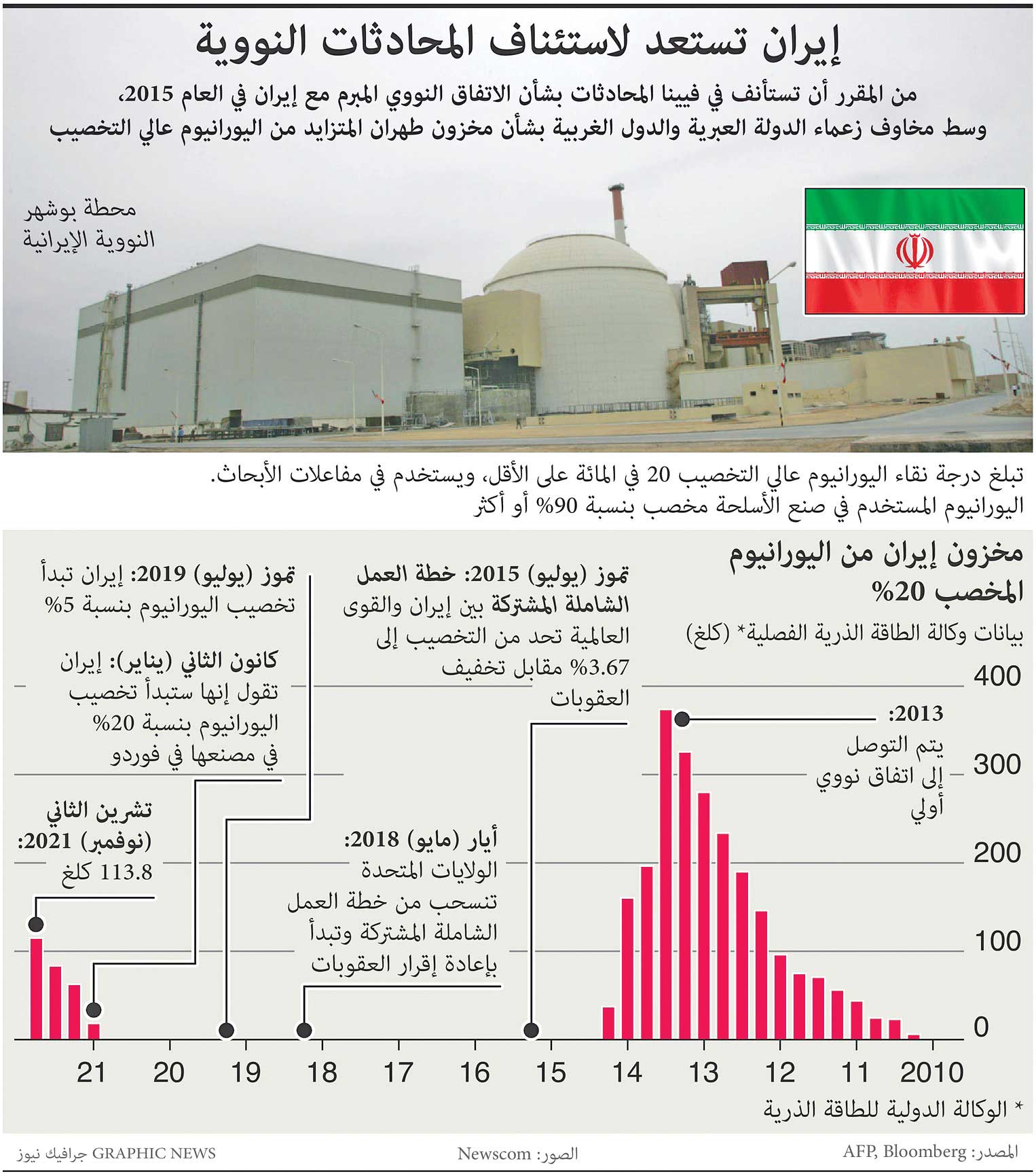 وقبل أيام من العودة إلى فيينا، أسف مدير وكالة الطاقة الذرية، رافاييل غروسي، لعدم التوصل إلى اتفاق» مع إيران حول برنامج تفتيش مواقعها النووية، وحذر قائلاً: «نحن نقترب من نقطة لن أتمكن فيها بعد الآن من ضمان استمرارية المعلومات» حول البرنامج النووي. وفي حين وصف وزير الخارجية حسين عبداللهيان المحادثات مع غروسي بالودية والصريحة والمثمرة، مع الحاجة إلى مزيد من العمل بشأن بعض المصطلحات، أصدرت فرنسا وألمانيا والمملكة المتحدة بيانًا مشتركًا في اجتماع مجلس محافظي الوكالة الدولية، أعربت فيه عن قلقها من تقدّم البرنامج النووي والتوترات المنهجية له، ونبهت إلى أن تصرّفات إيران في تعزيز قدراتها تعرّض المجتمع الدولي لأخطار جادة.