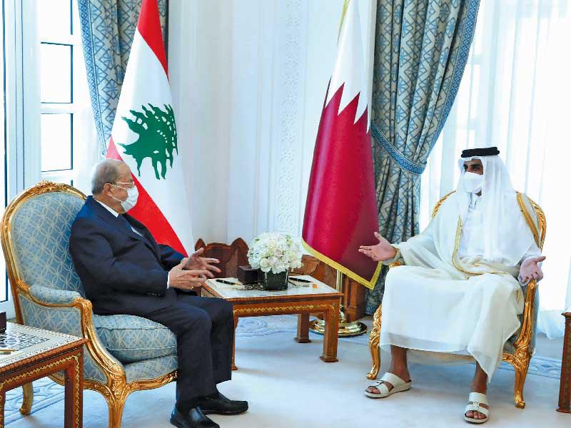 ورافق عون وزير الطاقة وليد فياض، خصوصاً لبحث ملف الطاقة، لاسيما أن لبنان يأمل دعماً قطرياً لمشاريع الكهرباء. وعلى أثر مطالبة عون قطر بالمساعدة، تلقى جواباً من الأمير بالاستعداد لتقديمها والسعي لإصلاح علاقات لبنان العربية، على أن يساعد لبنان نفسه وفق مصادر رئاسة الجمهورية، التي تشير إلى استعداد قطري للمساعدة الاقتصادية والاستثمار، بعد إنجاز الإصلاحات المطلوبة وبناء عناصر الثقة.ولا تنفصل التحركات الاحتجاجية عن زيارة عون، إذ هناك من أراد إيصال رسالة في الداخل والخارج أن الرئيس يغادر لبنان على وقع تظاهرات بسبب انهيار الأوضاع المالية والاقتصادية في عهده. وللتظاهرات في البيئة السنية أسباب متعددة، بعضها ينطلق من خلفية الصراع على النفوذ وإثبات الحضور على الأرض، وبعضها الآخر غايته مطالبة سعد الحريري بالعودة إلى لبنان ولملمة الوضع، بدلاً من استمرار الضياع القائم، في ظل عدم وضوح الموقف النهائي لرئيس تيار المستقبل من المشاركة في الانتخابات النيابية المقبلة. في هذا الوقت، تبدو الأوضاع كلها تتفلت من عقالاتها، في حين تبدو قدرة القوى السياسية على مواجهة الواقع القائم غير متوافرة. من ينظر إلى اللبنانيين، سواء الذين كانوا في الطرقات وشاركوا في الاحتجاجات أو غير المشاركين، فستتبدى له ملامح الغضب على وجوههم؛ غضب ينذر بانفجار شعبي اجتماعي في أي لحظة، ويمكن لأي حدث أن يطلقه في تحركات كبرى، خصوصاً مع تحضير جهات نقابية وعمالية لتنفيذ المزيد من التحركات الاحتجاجية في الأيام المقبلة. وعليه، سيكون الوضع في لبنان بحالة سباق بين المعالجة السياسية -التي قد تُرسي تهدئة معينة على الأرض وتُشكل مدخلاً لتلافي مثل هذه التحركات التصعيدية- ووقوع الانفجار في أي لحظة.بالتزامن مع هذه التطورات، استمرت المشاورات في الكواليس بين «حزب الله» والرئيس عون وفريقه، للبحث عن صيغة تسوية ترضي مختلف القوى، تقوم على المقايضة بين ملف تحقيقات تفجير المرفأ وحصر التحقيق مع الرؤساء والوزراء والنواب بالمجلس النيابي، من خلال تشكيل هيئة تحقيق برلمانية، وبين إعادة تفعيل عمل الحكومة وإيجاد تسوية حول موعد الانتخابات النيابية وكيفية تصويت المغتربين اللبنانيين. لا يزال العمل مستمراً للوصول إلى صيغة توافقية يعمل «حزب الله» على إرسائها بين رئيس الجمهورية ورئيس مجلس النواب نبيه بري. لكن حتى الآن، لا تزال هذه الصفقة غير مكتملة المعالم، في ظل معلومات تتحدث عن أن عون لا يريد فقط ضمانات تتعلق بالانتخابات النيابية، بل أبعد من ذلك، يريد وعداً من «حزب الله» بدعم ترشيح جبران باسيل لرئاسة الجمهورية، وهذا الموقف استدعى من عون تصويباً لموقف سابق أطلقه حول أنه لن يسلم البلد إلى الفراغ، فاعتبر عون أن هذا الموقف أسيء فهمه، وهو لم يقصد أنه لا يريد مغادرة القصر الجمهوري، بل الوصول إلى اتفاق وتسوية تسبق موعد الانتخابات لتحصل في موعدها، والتسوية التي ترضي عون فقط هي الوصول إلى تفاهم مع «حزب الله» لدعم باسيل للرئاسة، خصوصاً أن المعايير التي يضعها رئيس الجمهورية لانتخاب سلفه تنطبق على باسيل لناحية التمثيل الشعبي والسياسي ومقبوليته من أطراف مختلفة. «حزب الله» يرفض إعطاء الجواب حالياً، ويفضل انتظار تطورات المنطقة، كما أنه لا يغفل أن باسيل مرفوض من أغلبية القوى السياسية، كحركة أمل، وتيار المستقبل، والحزب التقدمي الاشتراكي، والقوات اللبنانية وتيار المردة.