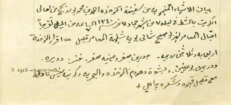 وثيقة لها تاريخ : قراصنة بَلَم «بورويجح» نهبوا «أموال وجِدِرين وصينية وبشوت وقهوة»