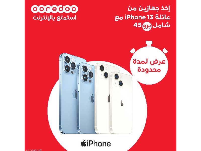 استكمالاً لمسيرة نجاحها، وسعياً منها لإثراء تجربة عملائها الرقمية، واحتفالاً بنهاية العام، أطلقت Ooredoo للاتصالات، أول شركة اتصالات تقدم الخدمات الرقمية المبتكرة في الكويت، عرضاً حصرياً على باقة شامل برو 45 للدفع الآجل. ويُمكن العرض الحصري على باقة شامل برو 45 للدفع الآجل، العملاء من الحصول على جهازين من أحدث مجموعة أجهزة iPhone 13 عن طريق اختيار اثنين من نفس الطراز أو طرازين مختلفين من iPhone 13، فضلاً عن الاستمتاع بمزايا أخرى مثل الحصول على خصم 50 في المئة عند شراء خط مكالمات ثانٍ، وخصم 50 في المئة عند شراء العميل خط إنترنت، إضافة إلى دقائق محلية غير محدودة وإنترنت 5G وإنترنت تجوال غير محدود واستخدام YouTube والوسائل الاجتماعية بشكل غير محدود.