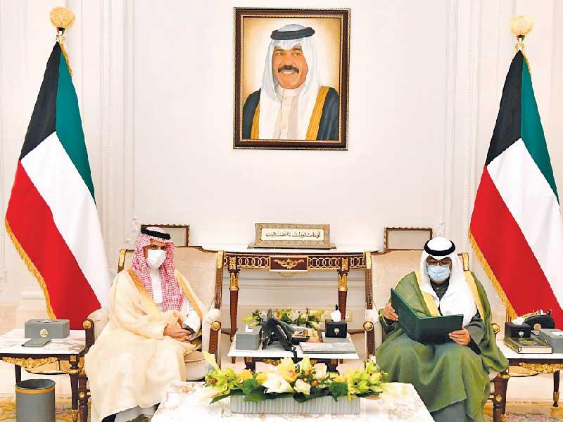 تلقى سمو أمير البلاد الشيخ نواف الأحمد دعوة من خادم الحرمين الشريفين الملك سلمان بن عبدالعزيز، لحضور قمة قادة دول مجلس التعاون، لدول الخليج العربية في دورتها الـ 42.وتسلم سمو ولي العهد الشيخ مشعل الأحمد، من وزير الخارجية السعودي الأمير فيصل بن فرحان، الدعوة الموجهة إلى صاحب السمو، لدى استقباله أمس في قصر بيان.