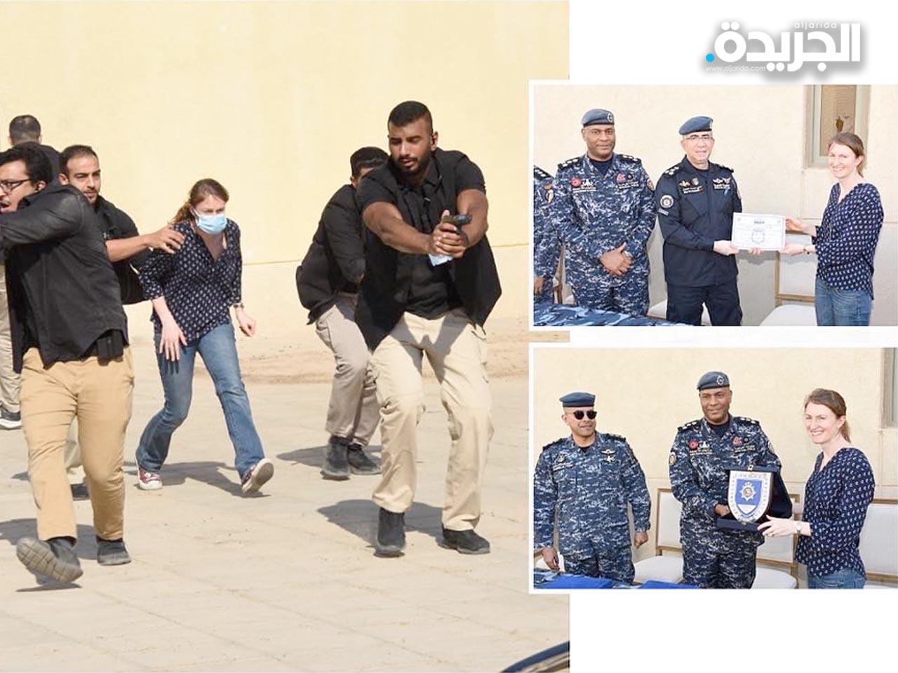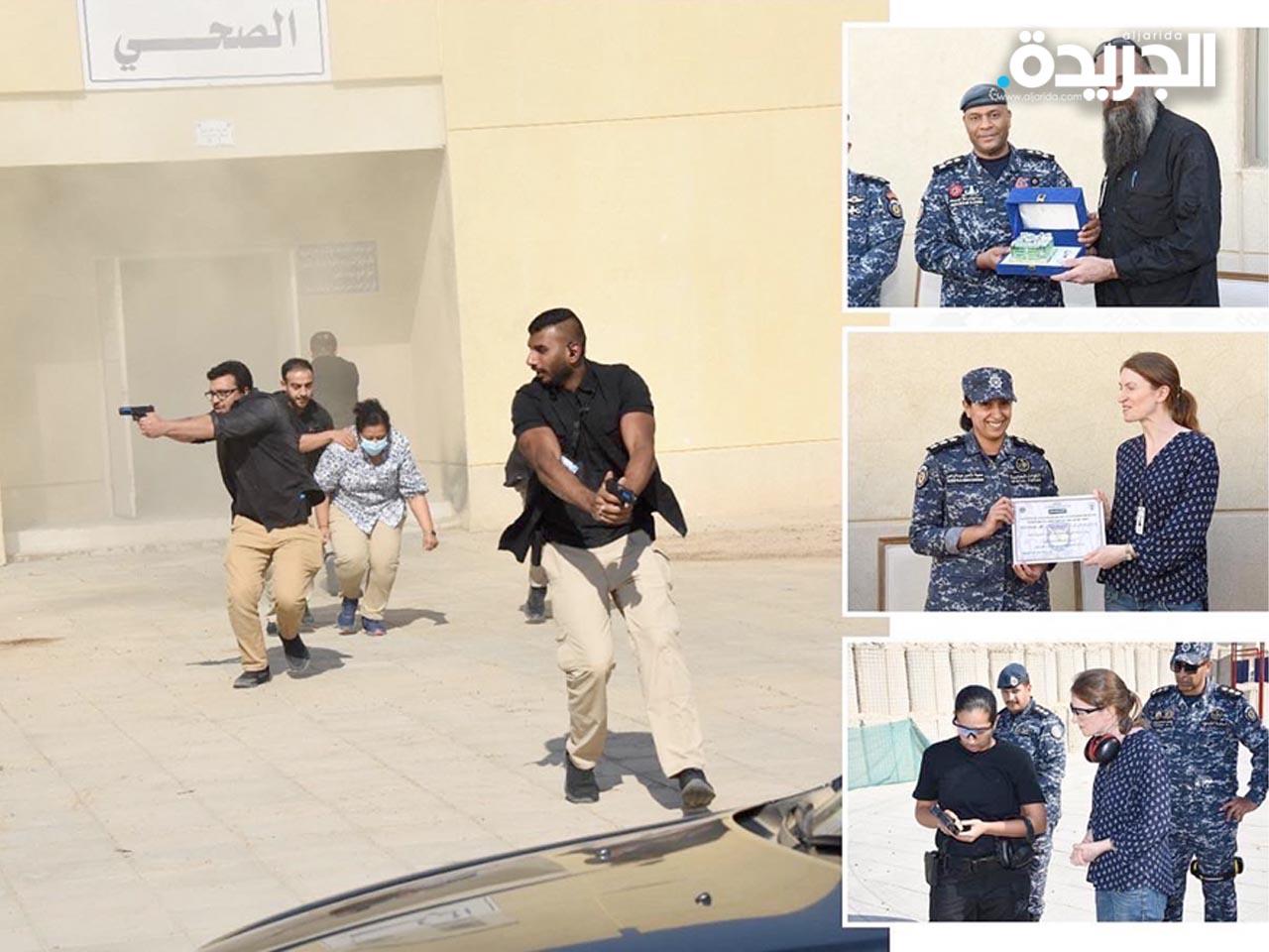 أقيم أمس الحفل الختامي للبرنامج التدريبي لقوات الأمن الخاصة في حماية الشخصيات واكتشاف المتفجرات، في معسكر قوات الأمن الخاصة، من 29 إلى 30 نوفمبر 2021، وشارکت سفيرة المملكة المتحدة لدى الكويت بليندا لويس في الحفل، وكان في استقبالها مساعد المدير العام لقوات الأمن الخاصة لشؤون العمليات العميد عبدالوهاب الياقوت، ومدير إدارة حماية الشخصيات العقيد أحمد العطروزي، ومساعد مدير حماية الشخصيات العقيد عبدالله المشيطي، وقيادات القطاع.واشتمل اليوم الأول للتدريب على محاضرات عن حماية الشخصيات والسفارات واكتشاف المتفجرات، وعرض عن دورة فن القيادة الوقائية، بينما جرى خلال اليوم الثاني تنفيذ عرض ميداني عن حماية الشخصيات، شاركت فيه السفيرة البريطانية ونائب السفيرة، عن كيفية إحباط محاولة اغتيال، وأظهرت المجموعة المكلفة بالحماية قدرات ومهارات فائقة في التدخل السريع، والتصدي للمهاجمين والسيطرة والتأمين.