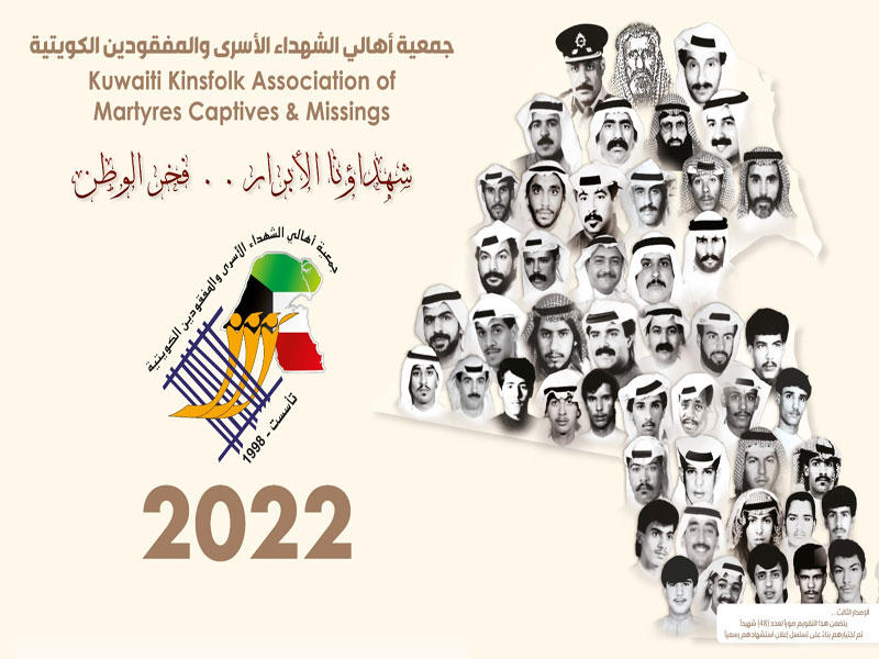 أعلنت جمعية أهالي الشهداء الأسرى والمفقودين الكويتية إصدارها روزنامة الشهداء لعام 2022، وقال رئيس مجلس إدارة الجمعية فايز العنزي إن الجمعية تحرص على إصدارها في بداية كل عام حرصاً منها على تخليد شهداء الكويت الأبرار الذين قدموا أرواحهم هدية لهذا الوطن العزيز.وذكر العنزي في تصريح أن الروزنامة السنوية الجديدة تحتوي على صور وبيانات لـ 48 شهيداً من الأسرى الذين تم التعرف على رفاتهم والإعلان لاحقاً عن استشهادهم بعد جلبهم من بعض المقابر الجماعية في العراق، مع ذكر نبذة من سيرهم الذاتية العطرة.