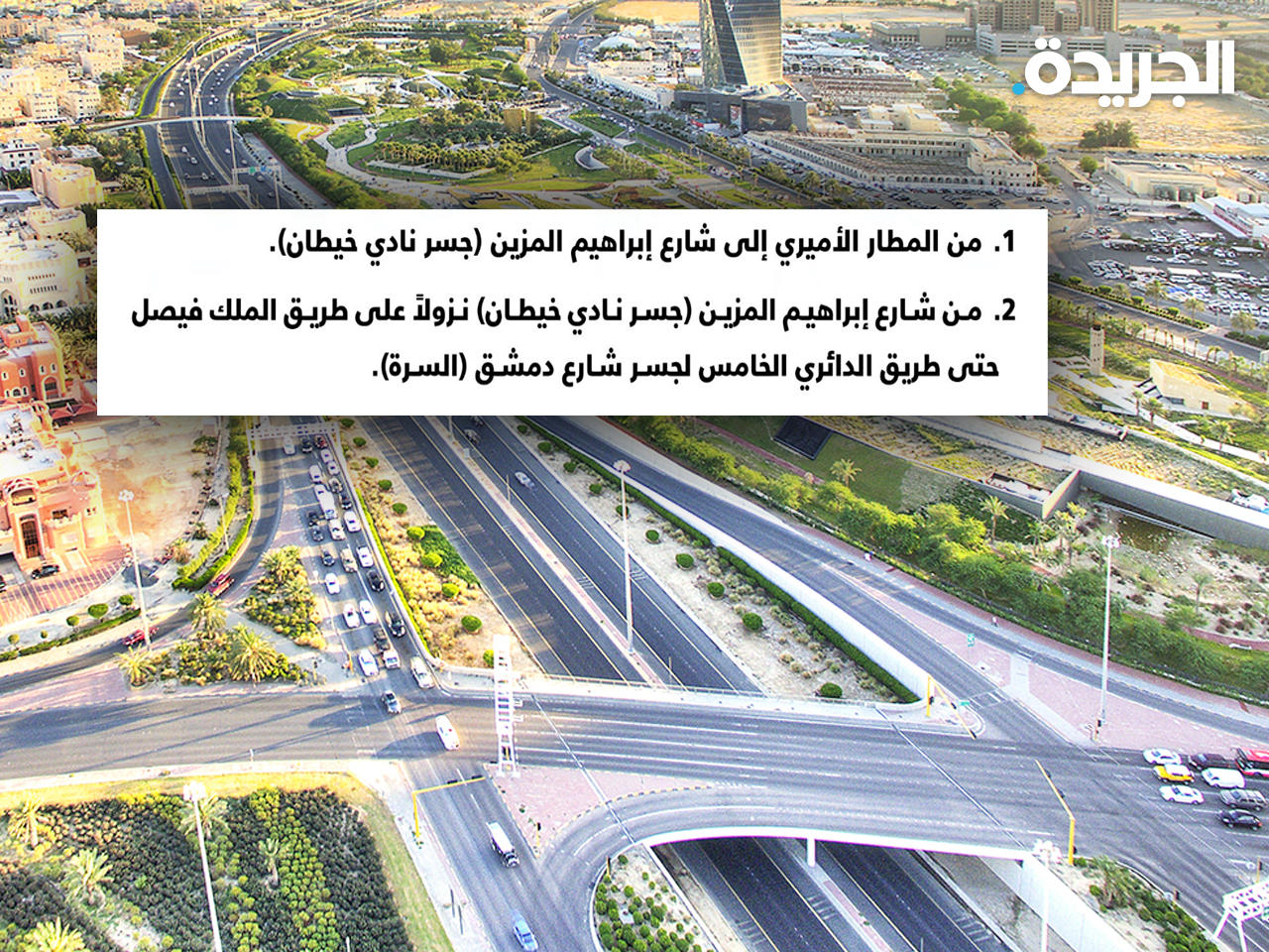 3- من جسر شارع دمشق (السرة) إلى بوابة قصر بيان (بوابة الدائري الخامس).وتهيب الإدارة العامة للعلاقات والإعلام الأمني بالإخوة مرتادي هذه الطرق اتباع إرشادات رجال الأمن، واتخاذ طرق بديلة خلال تلك الفترة.