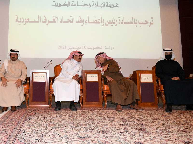 وقال الصقر: من هذا المنطلق تدعو غرفة تجارة وصناعة الكويت إلى إحياء اللجنة الكويتية - السعودية التي شُكلت عام 2006 لبحث معوقات التعاون بين الدولتين على أسس الحقائق والتطورات والمصالح المشتركة.خامساً: تعمل كل من المملكة العربية السعودية والكويت على تحقيق رؤيتين اقتصاديتين، تقومان بشكل أساسي على تخفيف الاعتماد على النفط، وتوسيع القاعدة الانتاجية، وتعزيز دور القطاع الخاص في اطار المنافسة والعدل وبناء اقتصاد مستدام يعيش عصره ويبني مستقبله، وينفتح على التقدم العلمي والإبداع.ولأننا نعتقد أن الرؤى التنموية لكل دول مجلس التعاون الخليجي يجب أن تكون واضحة ومفتوحة لمساهمات كل مواطني هذه الدول، فإننا نجد من المناسب انتهاز هذا اللقاء للتعريف بأهم منطلقات ومشاريع الرؤيتين، ولعرض آخر مستجدات تطوير وتحسين بيئة الأعمال في البلدين الشقيقين.الصقر