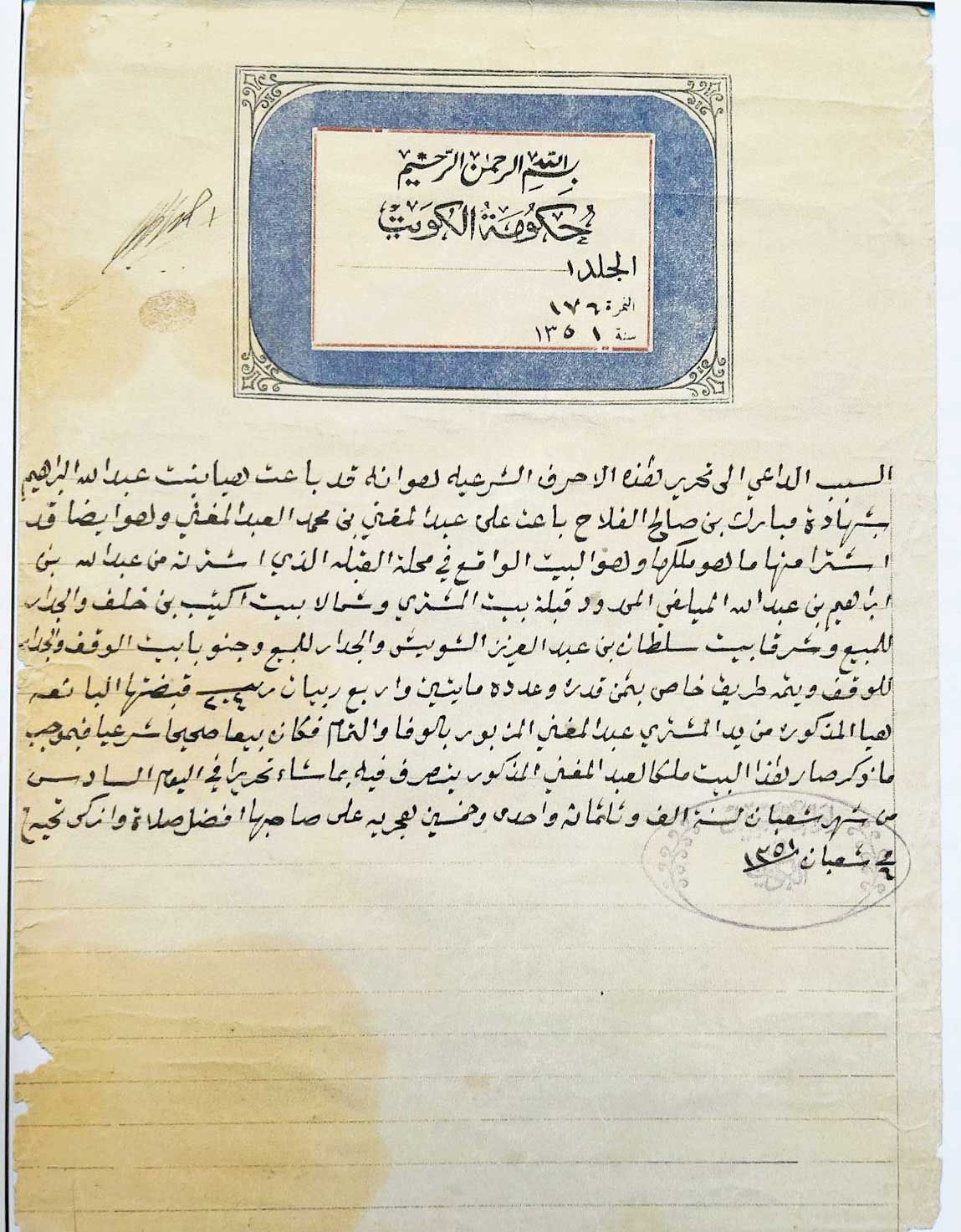 تحدثت في مقالات سابقة عن الوثائق العدسانية التي كان يصدرها قضاة الكويت من آل العدساني الكرام في تعاقبهم حتى عهد الشيخ عبدالله بن خالد العدساني عام 1930، حينئذ انتقل القضاء إلى عالم الكويت الشيخ عبدالله بن خلف الدحيان، ورغم ممانعته الشديدة لتولّي هذا المنصب الحساس، فإنه وافق بعد ضغوط عليه، لكنه حدد فترة ولايته بألا تزيد على سنة عند توليه، ريثما تستكمل الحكومة إنشاء قضاء جديد، وتسلّم بعده الشيخ يوسف بن عيسى القناعي، واستكملت المراحل الأخرى تدريجياً بظهور وثائق جديدة، وعرفت في الكويت باسم وثيقة "أم علَمين" لحملها علم الإمارة الأحمر، وظهرت هذه النوعية من الوثائق في منتصف ثلاثينيات القرن الماضي!وما بين المرحلتين الأولى (الوثائق العدسانية) والمرحلة الثالثة (وثائق أم علمين)، ظهرت نوعية أخرى في الشكل، وأصبحت الحكومة هي الجهة المسؤولة للإصدار، كما تشاهدون أعلاه، وفيما يلي نص إحدى الوثائق، وبعد ذلك قراءة للمضمون:بسم الله الرحمن الرحيمحكومة الكويت الجلد 1النمرة 176سنة 1351(السبب الداعي الى تحرير هذه الاحرف الشرعيه هو انه قد باعت هيا بنت عبدالله البراهيم بشهاده مبارك بن صالح الفلاح باعت على عبدالمغني بن محمد العبدالمغني وهو ايضا قد اشترا منها ماهو ملكها وهو البيت الواقع في محله القبله الذي اشترته من عبدالله بن ابراهيم بن عبدالله المليفي المحدود قبلته بيت المشترى وشمالا بيت اكتيب بن خلف والجدار للمبيع وشرقاً بيت سلطان بن عبدالعزيز الشويش والجدار للمبيع وجنوبا بيت الوقف والجدار للوقف ويتمه طريق خاص بثمن قدره وعدده مايتين واربع اربيات قبضتها البائعه هيا المذكوره من يد المشتري عبدالمغني المزبور بالوفا والتمام فكان بيعاً صحيحاً شرعياً فبموجب ماذكر صار هذا البيت ملكا لعبدالمغني المذكور يتصرف فيه بما شاء تحريرا في يوم السادس من شعبان لسنه الف وثلثمائه واحدى وخمسين هجرية على صاحبها افضل صلاة وازكى تحيه 6 شعبان 1351).قراءتي للوثيقة:1- ظهر لأول مرة توقيع وختم الحاكم على وثائق تملّك البيوت، كما يشاهد في الأعلى ناحية الشمال ختم وتوقيع الشيخ أحمد الجابر الصباح، في حين أن الوثائق التي سبقت ذلك عليها ختم وأسماء قضاة العداسنة الكرام. 2- في الأعلى مستطيل لون إطاره بنفسجي وبداخله بيانات، تعتبر بداية عهد الأرشفة للوثائق، و(الجلد) هو الدفتر التي سُجلت فيه الوثيقة، ويحمل رقم 1، أما النمرة 176، فمعنى ذلك أن هناك عدد 175 وثيقة سبقت هذه الوثيقة وسُجلت بالدفتر.3- تاريخ صدور الوثيقة في 6 شعبان 1351 هجري، وما يقابل بالميلادي 4 ديسمبر 1932.4- البائعة للبيت امرأة، هي المرحومة هيا بنت عبدالله البراهيم (الإبراهيم)، وأرجو ملاحظة أن المجتمع الكويتي أعطى الحرية للمرأة أن تبيع وتشتري وتوقف مالها الخاص بسهولة ويُسر منذ عهود قديمة، بينما لا نجد ذلك في المجتمعات الأخرى..!5- زوج البائعة هو المرحوم مبارك صالح الفلاح، وحضر بصفته شاهداً، وقبضت البائعة ثمن البيت بيدها.6- المشتري هو جدي المرحوم عبدالمغني بن محمد العبدالمغني، لغرض ضم البيت المشترى إلى بيت العائلة.7- ثمن الشراء 204 روبيات هندية، وهذه العُملة كانت مستخدمة في الكويت بذلك الوقت وتعادل الروبية الواحدة 75 فلساً، ويصبح الثمن إذا حسبنا بالدينار الكويتي 15.300 (خمسة عشر ديناراً وثلاثمئة فلس لا غير)..!8- وردت أسماء بالوثيقة، وهذه الأسر مجاورة للبيت: عبدالله بن إبراهيم بن عبدالله المليفي، سلطان بن عبدالعزيز الشويش، اكتيب بن خلف العنزي.9- يلاحظ أنه ورد بالوثيقة تحديد دقيق لتبعية أجدر البيوت، وكل جدار يتبع بيت صاحبه، ولا حق للمشتري في تبعيتها له، حفظاً لحقوق الجميع..!10- ورد في الوثيقة من البيوت المجاورة، بيت وقف مجاور لبيت جدي، وهذا البيت كان وقفاً على مسجد بن شرف القريب من قصر العدل الحالي ناحية الجنوب، لكنّ المسجد القديم هُدم عام 1987، وظل المكان خالياً فترة طويلة، وعلى أثر ذلك تنبهت الأمانة العامة للأوقاف في الآونة الأخيرة، وبنت مسجداً آخر كذلك على الطراز القديم في نف