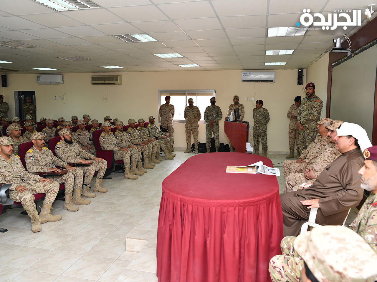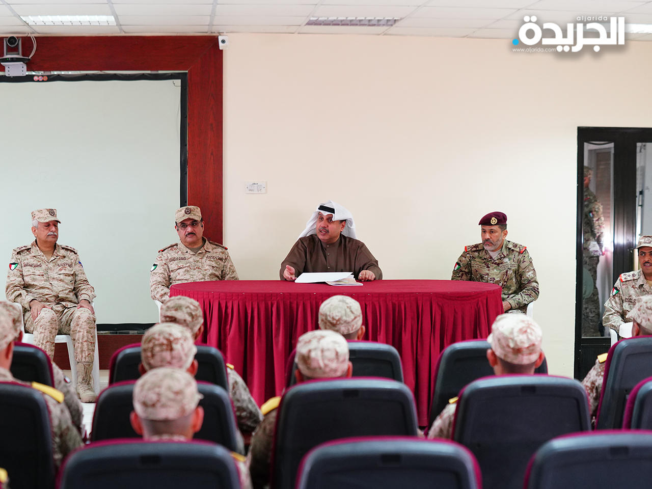 وفي كلمة له خلال لقائه بالمجندين عبر نائب رئيس مجلس الوزراء ووزير الدفاع عن فخره واعتزازه بلقاء صفوة شباب الوطن، من أبنائه المجندين، الذين لبوا نداء الواجب العسكري لخدمة الكويت، والتضحية من أجلها، تحت ظل القيادة الحكيمة لحضرة صاحب السمو أمير البلاد القائد الأعلى للقوات المسلحة، وسمو ولي عهده الأمين، وسمو رئيس مجلس الوزراء.كما دعا الشيخ حمد جابر العلي في كلمته المجندين إلى تسخير كافة إمكانياتهم ومواهبهم لخدمة القوات المسلحة، والتي باتت تعتمد اليوم على المهارات العلمية لمنتسبيها، قبل اعتمادها على قدراتهم البدنية، فالأسلحة والمعدات العسكرية الحديثة أصبح العمل والتحكم بها يتم من خلال الأنظمة والبرامج التكنولوجية، مضيفاً بأن الجيش الكويتي يفتح أبوابه للراغبين من المجندين بالتطوع بشرف الخدمة العسكرية بعد انتهاء مدة فترة خدمتهم الإلزامية.وفي ختام زيارته أثنى نائب رئيس مجلس الوزراء ووزير الدفاع على الجهود التي تقوم بها هيئة الخدمة الوطنية العسكرية وبتعاونها مع عموم وحدات الجيش لتأهيل وإعداد المكلفين بالخدمة الوطنية، وعملها على تنمية روح الولاء والإنتماء لدى الشباب الكويتي، والإسهام في بناء شخصيته العسكرية، وتطوير قدراته ومهاراته الذاتية، وتعزيز هويته الثقافية، وغرس مفاهيم الضبط والربط والنظام والتعاون في نفسه، لخدمة وطنه والعمل لما فيه خيره ورفعته وازدهاره.