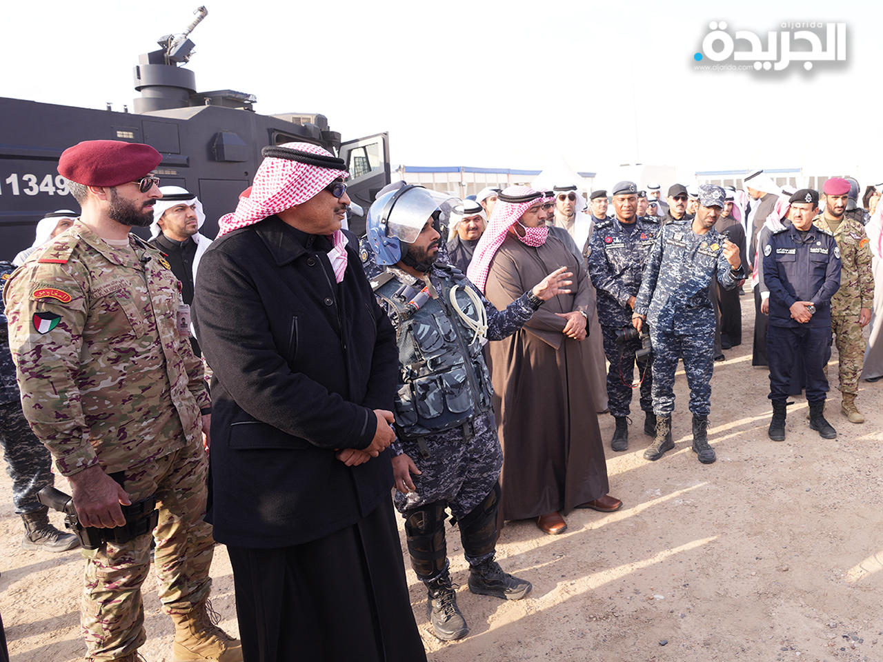 كما قام سموه بزيارة منفذ العبدلي واستمع إلى شرح عن طبيعة العمل في المنفذ وكيفية التنسيق بين الجهات المعنية واطلع على آلية سير العمل فيه وأنظمة وأجهزة الرصد المستخدمة في التفتيش.ثم تفقد سمو رئيس مجلس الوزراء مركز الصخيبري الحدودي وشاهد عرضاً مرئياً عن آلية عمل الكاميرات الحرارية والنظام الأمني الكهربائي في ضبط المتسللين والمهربين.بعدها، انتقل سموه إلى مخيم الرتقة وشاهد عرضاً لفرقة خيالة وزارة الداخلية التابعة لقطاع التعليم والتدريب وعرضاً آخر لآليات قوات الأمن الخاصة وأمن الحدود البرية علاوة على عرض مرئي لخطة ودور القوات الخاصة في التصدي لأي اضطرابات.ونقل سمو رئيس مجلس الوزراء في تصريح صحفي على هامش الزيارة تحيات سمو أمير البلاد الشيخ نواف الأحمد الجابر الصباح القائد الأعلى للقوات المسلحة وتحيات سمو ولي العهد الأمين الشيخ مشعل الأحمد الجابر الصباح حفظهما الله ورعاهما لجميع منتسبي وزارة الداخلية، مشيراً إلى توجيه القيادة السياسية بتوفير كل ما يلزم لوزارة الداخلية ومنتسبيها. وأعرب سموه عن سعادته بما شهده من إنجازات تحققت في تطوير الطاقة البشرية والأجهزة والمعدات سيما في مجال التحول الرقمي الذي تقوم به وزارة الداخلية لتسهيل كافة الإجراءات لصالح المواطنين والمقيمين.وقال سمو رئيس مجلس الوزراء إن الأمن هو سياج كل القضايا ووزارة الداخلية هي العين الساهرة على أمن واستقرار البلاد وذلك لن يتحقق إلا عبر تطوير وتحديث القدرات والإمكانيات والتدريب المستمر لمواجهة أي حدث طارئ أو مستجد.وعبر سموه عن الشكر والتقدير لمنتسبي وزارة الداخلية على ما يقومون به من جهد وتفان من أجل حفظ أمن واستقرار البلاد وتطبيق القانون وإشاعة الطمأنينة، مثمناً تنسيقهم المستمر مع أشقائهم في الجانب العراقي لما فيه مصلحة الكويت والعراق ودرء كل خطر عن حدود البلاد.وأعلن سموه عن فتح منفذ العبدلي الأسبوع المقبل لزيادة التعاون الاقتصادي والتبادل التجاري والتنقل بين الكويت والعراق بما يعود بالمنفعة على البلدين الشقيقين وفق الاشتراطات الصحية التي وضعتها وزارة الصحة.من جهة أخرى، أكد سمو رئيس مجلس الوزراء أن الوضع الصحي في البلاد «لا يزال مستقراً ولله الحمد الأمر الذي يتطلب منّا متابعة ما يحصل في دول متعددة في العالم من ارتفاع وزيادة انتشار الإصابات بالمتحور الجديد لفيروس كورونا أوميكرون والالتزام بالإجراءات الصحية ممثلة في ارتداء الكمام والتباعد الجسدي والتطعيم لتخفيف الأضرار من متحور أوميكرون».وبين أن هناك متابعة حثيثة من مجلس الوزراء واللجنة الوزارية لطوارئ كورونا ووزارة الصحة للتطورات بشأن متحور أوميكرون، سائلاً الله العلي القدير أن يجنبنا ويجنب العالم هذا الوباء.من جانبه، ألقى وزير الداخلية كلمة بهذه المناسبة أعرب فيها عن ترحيبه بالزيارة الكريمة لسمو رئيس مجلس الوزراء ومرافقيه لمنتسبي وزارة الداخلية والإدارة العامة للجمارك ما يعكس حرص واهتمام قيادتنا على دعم وتشجيع أبنائها من رجال الأمن تقديراً منها لجهودهم المخلصة وتضحياتهم في سبيل الدفاع عن وطننا وحفظ أمنه واستقراره وسلامة أراضيه.وأكد الوزير أن وزارة الداخلية وبدعم وتوجيهات قيادتنا الحكيمة ومتابعة سموه الكريمة ماضية في تنفيذ خطط التطوير والتحديث في جميع قطاعاتها والارتقاء بمستوى منتسبيها لتمكنهم من أداء مهامهم وواجباتهم على أكمل وجه.وأشار إلى أن رجال وزارة الداخلية والإدارة العامة للجمارك مستمرون في بذل ما في وسعهم من جهود مجددين العهد للكويت أميراً وولي عهد وحكومة وشعباً بأنهم على دروب الأمن سائرون وعلى العهد محافظون، داعياً الله تعالى بأن يكلل جهود القيادة الحكيمة لحضرة صاحب السمو أمير البلاد وولي عهده الأمين حفظهما الله ورعاهما بكل التوفيق والنجاح.هذا وقد أقام وزير الداخلية مأدبة غداء رسمية على شرف سمو رئيس مجلس الوزراء والوزراء المرافقين حضرها كبار القادة في وزارة الداخلية.