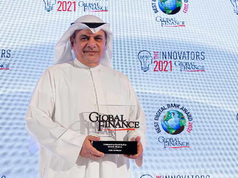 نائب رئيس مجلس الإدارة والرئيس التنفيذي لمجموعة بنك بوبيان عادل الماجد متسلماً جائزة المساهمة المميزة في التمويل الإسلامي