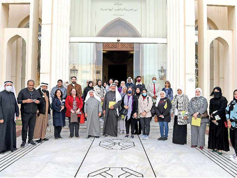 مختار الضاحية فيصل الوقيان والوفد الزائر في لقطة تذكارية بديوان بوخمسين (تصوير ميلاد غالي)