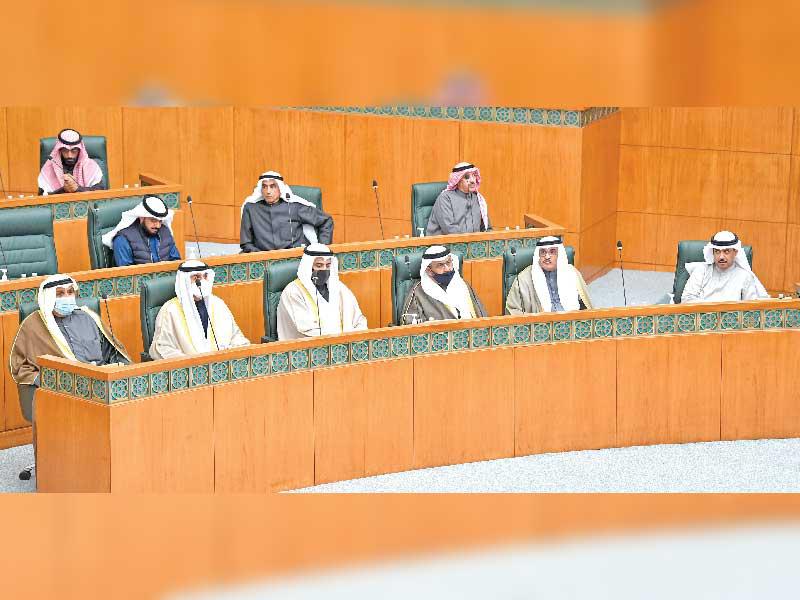 أدى رئيس وأعضاء مجلس الوزراء اليمين الدستورية أمام مجلس الأمة، وذلك لمباشرة أعمالهم كأعضاء في مجلس الأمة، وفقا للمادة 91 من الدستور.وتنص تلك المادة على أنه "قبل أن یتولى عضو مجلس الأمة أعماله في المجلس أو لجانه یؤدي أمام المجلس في جلسة علنية الیمین الآتية "أقسم بالله العظيم أن أكون مخلصا للوطن وللأمير، وأن أحترم الدستور وقوانین الدولة، وأذود عن حريات الشعب ومصالحه وأمواله وأؤدي أعمالي بالأمانة والصدق".