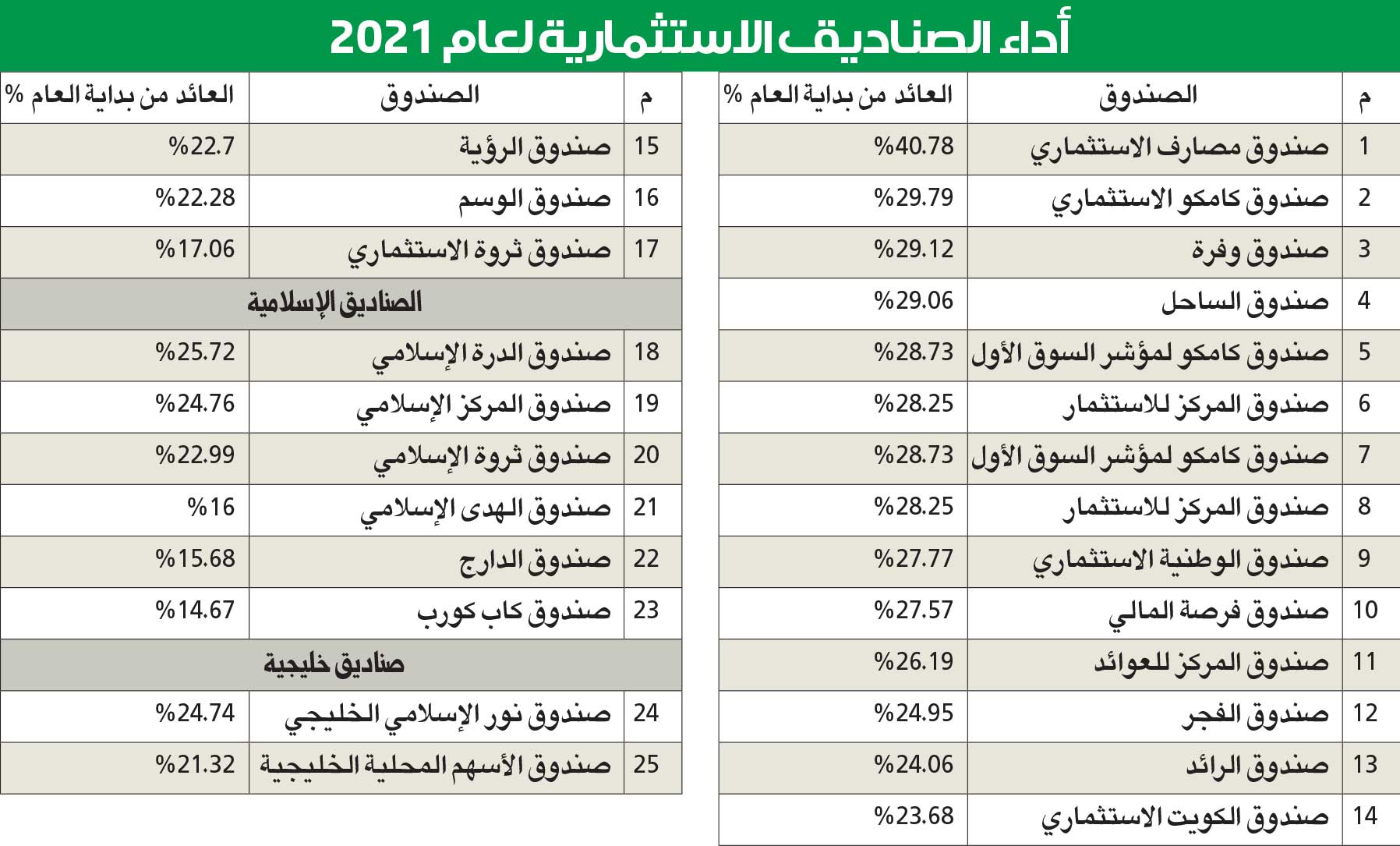 صناديق الاستثمار تنهي 2021 بأفضل العوائد منذ سنوات