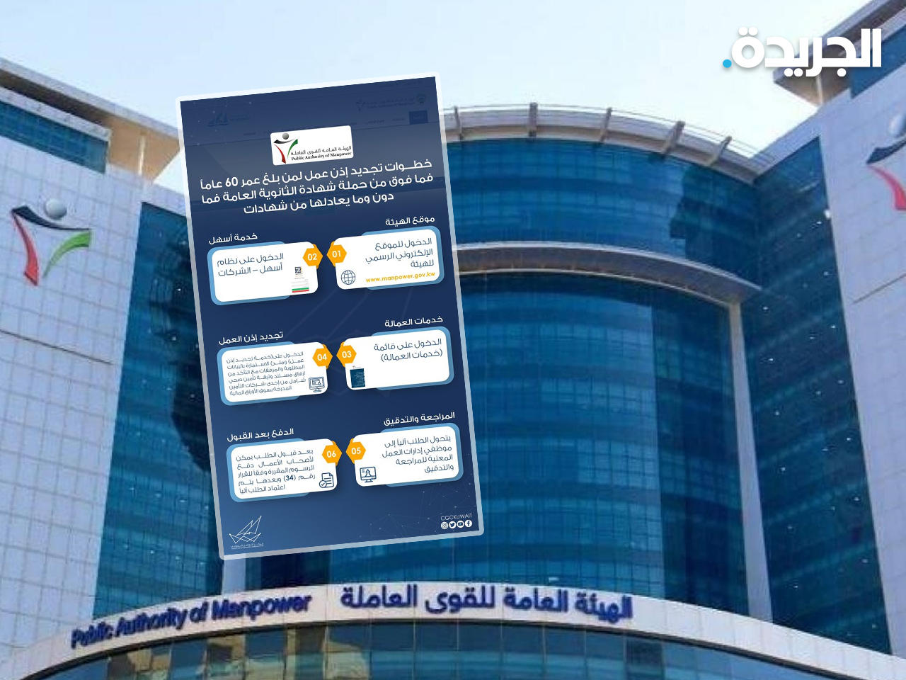 حددت الهيئة العامة للقوى العاملة خطوات تجديد إذن عمل لمن بلغ عمر 60 عاماً فما فوق من حملة شهادة الثانوية العامة فما دون وما يعادلها من شهادات، وذلك بحسب ما ذكر مركز التواصل الحكومي.