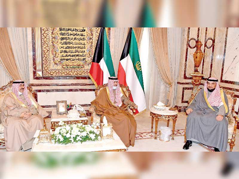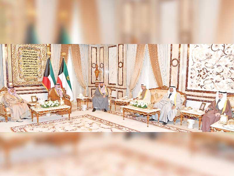 استقبل صاحب السمو أمير البلاد الشيخ نواف الأحمد، بدار يمامة، أمس، سمو ولي العهد الشيخ مشعل الأحمد.واستقبل سموه وبحضور سمو ولي العهد، سمو رئيس مجلس الوزراء الشيخ صباح الخالد، ونائب رئيس مجلس الوزراء وزير الدفاع الشيخ حمد الجابر، ونائب رئيس مجلس الوزراء وزير الداخلية الشيخ أحمد المنصور، ووزير الخارجية وزير الدولة لشؤون مجلس الوزراء الشيخ د. أحمد الناصر.من جهة أخرى، تلقى سموه، رسالة تهنئة من أخيه سمو ولي العهد الشيخ مشعل الأحمد بمناسبة عودة سموه إلى أرض الوطن العزيز بعد قضاء إجازة خاصة، جاء في نصها: يسرني بمناسبة عود سموكم الحميد إلى أرض الوطن العزيز أن أرفع إلى مقام سموكم الكريم بالغ آيات التهاني مقرونة بالحمد الكثير والشكر الوفير لله تعالى أن اطمأنت على صحة سموكم قلوبنا وشرحت بتمام عافيتكم صدورنا.