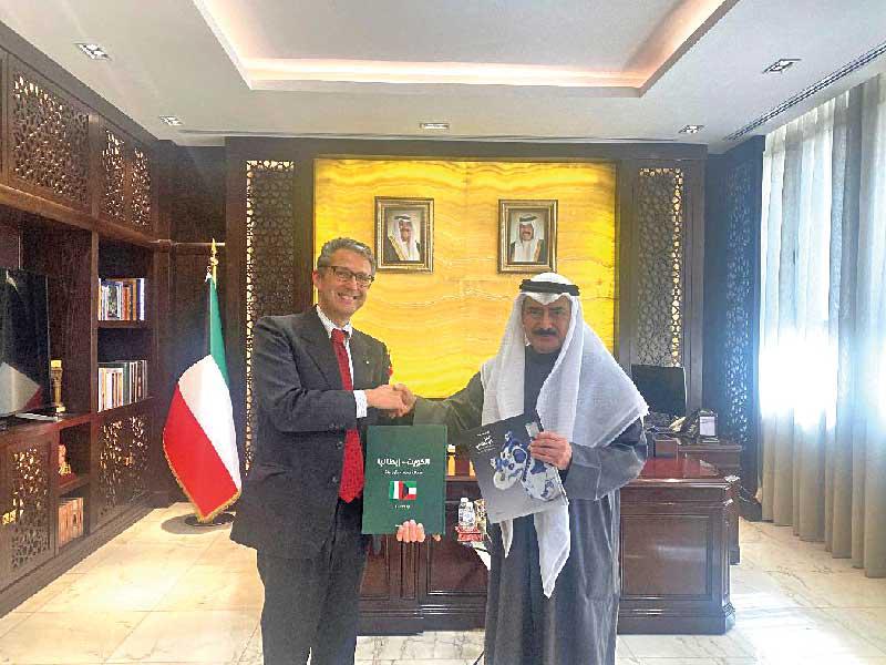 استقبل الأمين العام للمجلس الوطني للثقافة والفنون والآداب كامل العبدالجليل، سفير إيطاليا لدى الكويت كارلو بالدوتشي، في مكتبه، أمس الأول.وقال الناطق الرسمي للمجلس الأمين العام لقطاع الثقافة د. عيسى الأنصاري: «تناول اللقاء العلاقات الثقافية بين البلدين، وسبل تعزيزها». وقد أهدى السفير بالدوتشي إصدارين للعبدالجليل تمت طباعتهما في إيطاليا، يوثق الأول تاريخ العلاقات الكويتية- الإيطالية، وخاصة الثقافية والتراثية والفنية منها، بمناسبة مرور 60 عاماً على نشأة العلاقات بين البلدين. فيما يوثق الإصدار الثاني مقتنيات معرض متحف بارجيلو، والذي يحتفظ بمجموعة كبيرة ونادرة من مقتنيات الفن الإسلامي، حيث تعرض حالياً في مركز الأمريكاني الثقافي بدار الآثار الإسلامية.