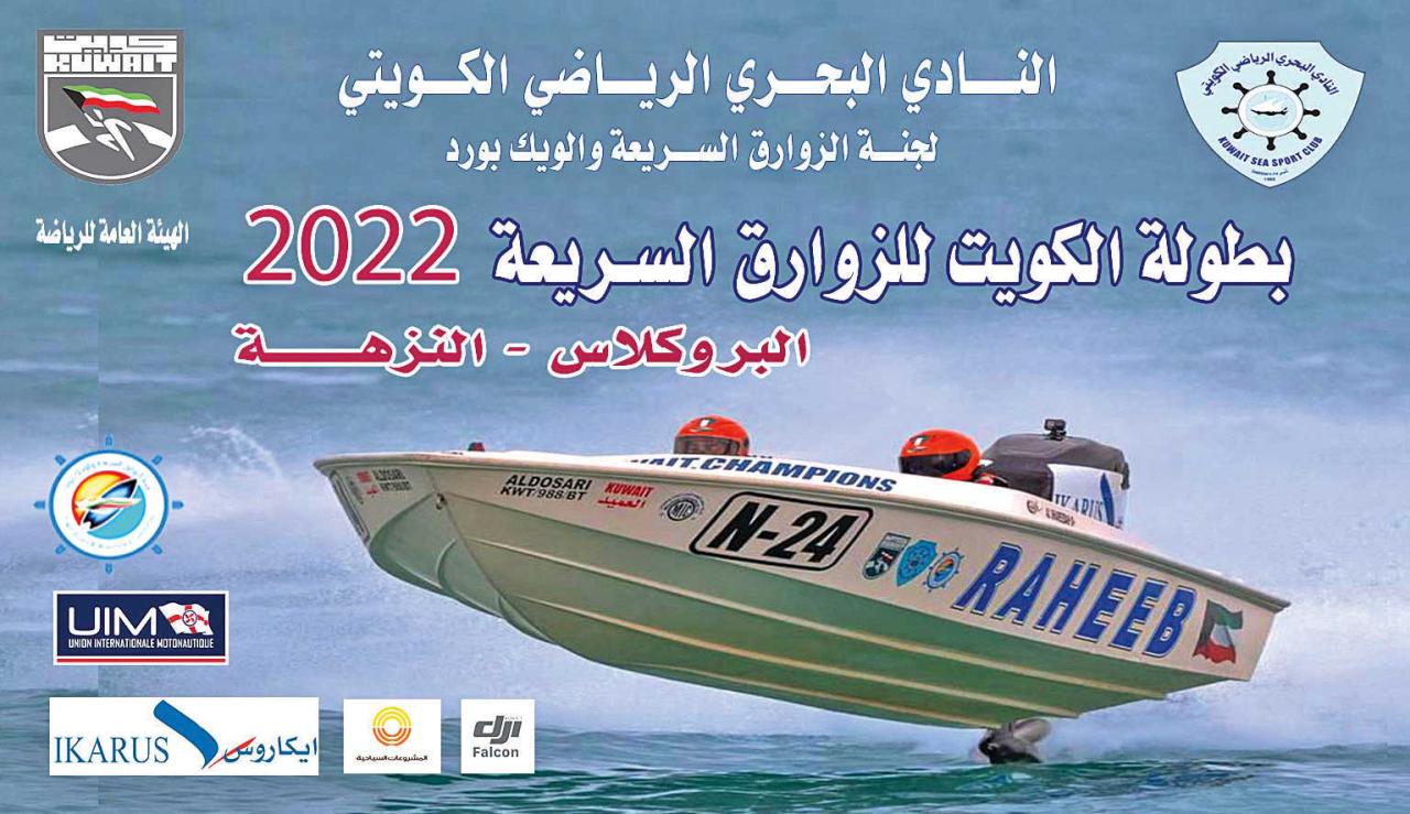 وجهت لجنة الزوارق السريعة والويك بورد في النادي البحري الدعوة إلى المتسابقين من المواطنين فقط للاشتراك في سباق الجولة الثالثة من بطولة الكويت للزوارق السريعة للموسم الحالي (البروكلاس- النزهة)، الذي ستقيمه الجمعة المقبل في المنطقة البحرية المقابلة للمارينا. كما وجهت لجنة الدراجات المائية في النادي الدعوة إلى المتسابقين من المواطنين والمقيمين للاشتراك في سباق الجولة الثالثة (سباق الماراثون) لبطولة الكويت المفتوحة للدراجات المائية للموسم 2022، والذي سيقام السبت المقبل في المنطقة البحرية المقابلة للجزيرة الخضراء.