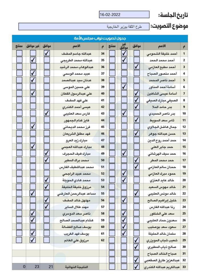 23 نائباً رفضوا طرح الثقة بوزير الخارجية... و21 أيدوا