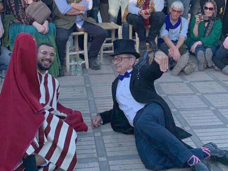 لفت سفير بريطانيا في المغرب، سايمون مارتن، الأنظار بشوارع مدينة مراكش، أخيراً، عندما تقمص دور حكواتي وسط ساحة "جامع الفنا" الشهيرة.وقال موقع سكاي نيوز، أمس، إن متفرجين تحلقوا حول الدبلوماسي البريطاني، لسماع ما سيحكيه، فيما يرتدي بذلة ساحر، ويحكي عن عشق رئيس الوزراء الأسبق للمملكة المتحدة ونستون تشرشل (1874 - 1965) لمدينة مراكش.