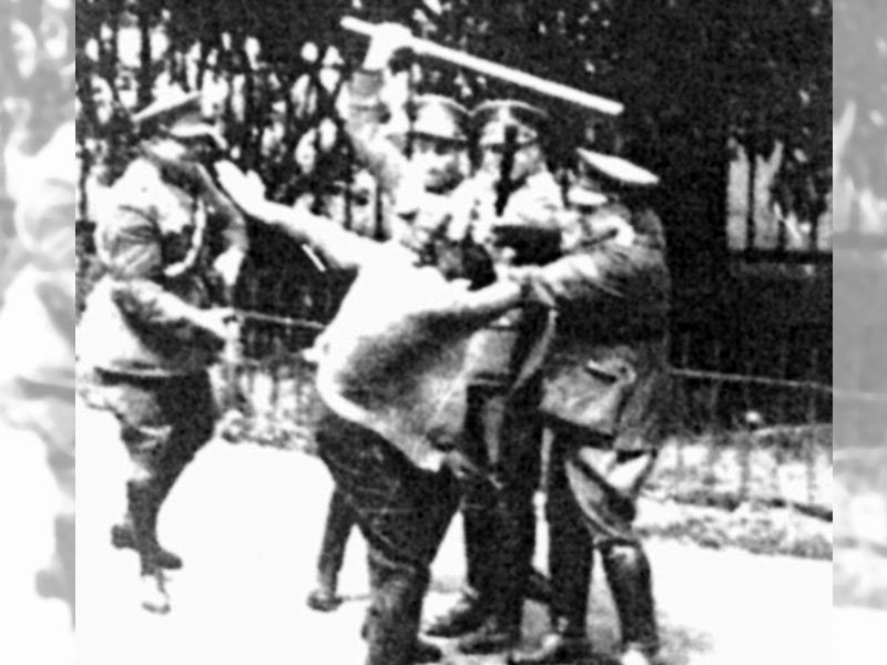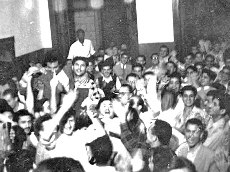 شراسة القمع لمظاهرة طلبة الجامعة الأمريكية سنة 1954 والملقى على الارض هو مصطفى نصر الله بعد إصابة سببت له الشلل كما استشهد في مكان قريب غسان أبو اسماعيل