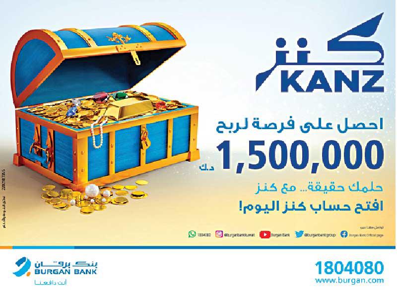 أطلق بنك برقان حساب السحب الجديد "كنز" بجوائز استثنائية تتجاوز قيمتها 2.300.000 دينار في سحوبات شهرية، ربع سنوية، نصف سنوية وسنوية. تم تطوير حساب "كنز" كبديل لحساب "يومي" في خطوة اتخذها "برقان" تماشياً مع حرصه المستمر على تحسين عروضه ومكافأة عملائه بتجارب تغير حياتهم، من خلال فرص أكبر للفوز بجوائز أكثر وأفضل. تشمل جوائز السحوبات الخمسة لحساب كنز جائزة سحب سنوية وقيمتها 1.500.000 دينار، والتي ستكون من نصيب رابح محظوظ واحد. وسوف يحصل الفائز في السحب نصف السنوي على 350.000 دينار، في حين يقدم السحب ربع السنوي جائزة بقيمة 25.000 دينار لأربعة رابحين سنويا، ويحصل كل من العشرين فائزا شهريا بجائزة السحب الشهري على 1000 دينار. ويعزز حساب كنز فرص العملاء في الفوز بجوائز نقدية قيّمة، من خلال السحب الأول من نوعه الخاص بالفروع الذي يتم من خلاله اختيار فائز واحد سنويا من كل من الـ 30 فرعا بجائزة نقدية قدرها 5.000 دينار من كل فرع. وبهذا يصل عدد الرابحين إلى أكثر من 275 سنويا.