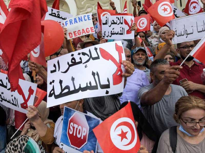 نفذ أنصار حركة "النهضة" الإسلامية ومعارضون في تونس مسيرة احتجاجية ضد قرارات الرئيس قيس سعيد على امتداد شارع "20 مارس" المؤدي إلى ساحة باردو قبالة مقر البرلمان. وسار بضعة آلاف في المسيرة على طول الشارع قبل أن تتوقف على أطراف ساحة باردو التي أحاطها الأمن بسياج حديدي كما أغلق عدة مداخل أخرى مؤدية إلى الساحة. وشارك في المسيرة التي وافقت ذكرى الاستقلال أمس، ممثلون عن أحزاب المعارضة وحركة "مواطنون ضد الانقلاب" التي تضم نشطاء سياسيين.