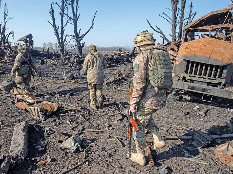 وبعد سلسلة اجتماعات طارئة على مدى 3 أيام مع قادة مجموعة السبع والمجلس الأوروبي وحلف شمال الأطلسي وزيارة القوات الأميركية في بولندا، شارك الرئيس الأميركي جو بايدن في اليوم الثاني من زيارته لوارسو في لقاء بين وزيرَي خارجيته ودفاعه أنتوني بلينكن ولويد أوستن ونظيريهما الأوكرانيين دميترو كوليبا والدفاع أوليسكي ريزنيكوف بفندق ماريوت لمناقشة القضايا الحالية والتعاون في المجالات السياسية والدفاعية.وعقد بايدن اجتماعاً خاصاً مع نظيره البولندي آندريه دودا، تطرق إلى الجدل المتعلق بكيفية تسليح أوكرانيا بطائرات حربية وغيرها من الضمانات الأمنية، وزار مركز استقبال للاجئين.وفي كلمة من القصر الملكي، دعا بايدن إلى مواجهة الغزو الروسي لأوكرانيا، وأكد الوحدة بالتصدي لنظيره الروسي فلاديمير بوتين، وتعهد باستعادة الديموقراطية في الداخل وتوحيدها في الخارج ضد "الحكام المستبدين، ومنهم بوتين والرئيس الصيني شي جينبينغ". وأفاد البيت الأبيض بأن خطاب بايدن المهم شمل "جهود العالم الحر الموحدة لدعم الشعب الأوكراني، ومحاسبة روسيا على حربها الوحشية والدفاع عن مستقبل ينبع من المبادئ الديموقراطية".وخلال تفقّده حدود أوكرانيا، قال يايدن للقوات الأميركية في بولندا: "أنتم أفضل قوة قتالية في العالم، ولدينا التزام مقدس بإعالة أسركم"، وأضاف، مخاطبا الشعب الأوكراني: "نحن واجبنا المقدس أن نهتم بكم عندما تكونون على ساحات القتال، وعندما تعودون إلى دياركم، والأوكراني لديه الكثير من الشجاعة والجرأة".بدوره، استبعد مستشار الأمن القومي الأميركي جيك سوليفان استخدام الأسلحة الكيماوية تحت أي ظرف، محذراً موسكو من أنها ستدفع ثمناً باهظاً جداً إذا استخدمت أسلحة كيماوية في أوكرانيا.في المقابل، هدد عضو مجلس الشيوخ الأميركي البارز، ليندسي غراهام، خلال مداخلة بمنتدى الدوحة، أمس، بأنه في حال شنّت روسيا حرباً نووية فإن الولايات المتحدة سترد بقوة، مؤكداً أنه "حان الوقت (للرئيس الروسي فلاديمير) بوتين أن يغادر السلطة"، وأن يقوم الشعب الروسي بنفسه بذلك التغيير.وخلافاً لإعلان الجيش الروسي المفاجئ إعادة تركيز هجومه على منطقة دونباس شرق أوكرانيا، أكدت وزارة الدفاع الأميركية (البنتاغون) أن الروس يعززون دفاعاتهم حول كييف، ولا يبدو أنهم أوقفوا خططهم للتقدم نحو المدينة.ووفق مسؤول رفيع في "البنتاغون"، فإن "مخزون روسيا من صواريخ كروز ينفد"، مؤكدا أن "نسبة فشلها في إطلاق الصواريخ تتراوح بين 20 و60 بالمئة، وأنه ليست هناك إشارات جديدة على استخدامها مجدداً الخارقة لسرعة الصوت". وفي حين أحدثت هيئة الأركان الروسية مفاجأة بإعلان رئيس إدارة العمليات سيرغي رودسكوي "تركيز الجزء الأكبر من الجهود على الهدف الرئيسي وهو تحرير دونباس"، أكدت رئاسة أركان الجيش الأوكراني، أمس، مقتل 170 جندياً من الجانب الروسي في منطقة دونيتسك ولوغانسك، أكبر مدينتين في دونباس. وكانت روسيا أعلنت، أمس، مقتل نحو 1400 جندي في شهر من القتال، وذلك بعد تقديرات أميركية بمقتل 7 آلاف على الأقل. وخارج دونباس، يتواصل الهجوم والقصف الروسي للمدن وتطويقها. وأكدت هيئة الأركان الأوكرانية مواصلة هجومها المضاد على خيرسون، المدينة الكبرى الوحيدة التي خسرها بالكامل.وفي محيط كييف، التي أعلن رئيس بلديتها، فيتالي كليتشكو، فرض حظر تجول مجدداً إلى صباح غد. وقال حاكم كييف أولكسندر بافليوك إن القوات الروسية سيطرت على بلدة سلافوتيتش التي يقيم بها العاملون في محطة تشرنوبيل النووية المعطلة، واحتلت مشفاها، وخطفت رئيس البلدة وسط تظاهرات في سلافوتيتش ضد الغزاة.وفي ماريوبول، قتل أكثر من ألفي مدني بحسب بلدية المدينة الساحلية الإستراتيجية الواقعة على بحر آزوف الذي قدّر لأول عدد قتلى قصف المسرح الرئيسي يوم 16 بنحو 300 شخص لقوا حتفهم من بين مئات المختبئين في قبو المبنى.وعلى الجبهة الرئيسية الأخرى إلى الشمال الغربي من العاصمة، يحاول الجيش الأوكراني تطويق القوات الروسية في ضواحي إ