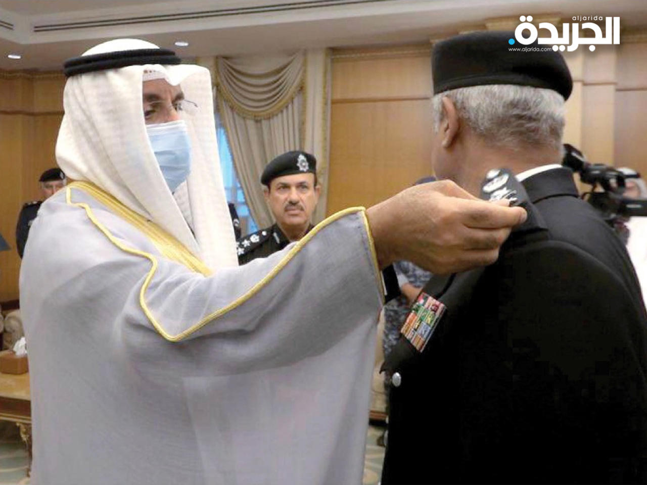 وفقاً للمرسوم الذي صادق عليه حضرة صاحب السمو أمير البلاد، وبناءً على عرض النائب الأول لرئيس مجلس الوزراء ووزير الداخلية الفريق أول متقاعد الشيخ أحمد نواف الأحمد الجابر الصباح، قام الوزير اليوم الخميس، وبحضور وكيل وزارة الداخلية الفريق أنور البرجس، ووكلاء الوزارة المساعدين، بتقليد رئيس جهاز أمن الدولة اللواء الشيخ سالم نواف الأحمد الصباح رتبة فريق، ونقل الوزير تحيات وتهنئة القيادة السياسية العليا للفريق الشيخ سالم نواف الأحمد الصباح على ترقيته، التي جاءت نتيجة للثقة التي توليها إياه، مؤكداً على أن تقدير صاحب السمو أمير البلاد وسمو ولي عهده الأمين وسام على صدورنا جميعاً.وأعرب النائب الأول لرئيس مجلس الوزراء ووزير الداخلية الفريق أول متقاعد الشيخ أحمد نواف الأحمد الجابر الصباح عن خالص تهانيه للفريق الشيخ سالم نواف الأحمد الصباح، مؤكداً على أن الترقية جاءت تجسيداً صادقاً لما أبداه من عطاء وإخلاص وتفان في كافة المواقع التي تولى العمل بها من أجل خدمة أمن الوطن وأمان المواطنين والمقيمين.