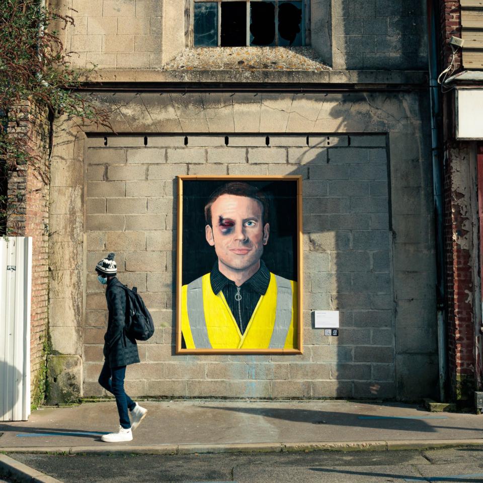 وصوّر جيريمي مرشّحة اليمين المتطرّف مارين لوبن بالحجاب، في حين تهاجم لوبن باستمرار الحجاب، وتخيّل أن المرشّح المتطرّف إريك زمور المعادي للمسلمين والمهاجرين، قد اعتنق أيضاً الإسلام، فيما صوّر الرئيس الحالي إيمانويل ماكرون وهو يرتدي سترة صفراء ووجهه مشوّه من آثار الضرب.وأشار الفنان في لوحة ماكرون إلى مواجهة حركة «السترات الصفراء» الاحتجاجية التي شهدتها فرنسا في عهده بالعنف من قبل الشرطة والاعتقالات.كما أظهرت اللوحة ثقباً في السترة التي يرتديها ماكرون جراء رصاصة، في إشارة إلى إطلاق الرصاص الحي من طرف الشرطة على المحتجّين بأمر من ماكرون.وقال جيريمي، إن «فكرة المشروع هي رسم الشخصيات السياسية التي تلصق وصماً بمجموعات تختلف معها».