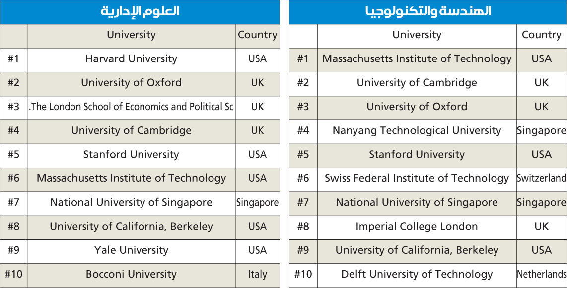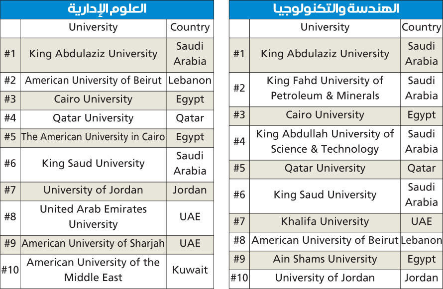 • 18 جامعة عربية من بينها 10 خليجية تمكنت من اختراق التصنيفات الـ 500 الأولى
