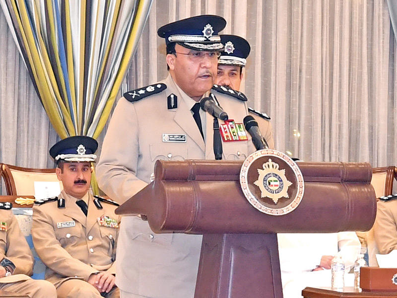 كما ألقى وكيل وزارة الداخلية كلمة بالمناسبة شكر في مستهلها "الزيارة الكريمة التي يستلهم منها منتسبو المؤسسة الأمنية ما يعينهم على بذل كل ما في وسعهم من تضحية وفداء لوطننا العزيز".وقال: إن تعزيز دعائم الأمن والاستقرار يتمثل في تطبيق القانون دون تفرقة على حد سواء وتكريس الانضباط المطلوب لتعزيز هيبة الأمن والعدالة بكل حزم في وجه كل من تسول له نفسه المساس بأمن الوطن ونسيجه الاجتماعي، ولن نقبل بأي تقصير أو إهمال.اضاف: لقد اعتمدنا استراتيجية أمنية شاملة تعتمد على المنظومة الأمنية المتكاملة التي تهدف إلى بسط مظلة الأمن في ربوع البلاد ومن خلال الحرص على تطبيق صحيح القانون وفرض هيبته. وأكدنا دائماً على الاستمرار في بذل كل الجهود من أجل محاربة أي ظواهر سلبية أو مخالفات قانونية تعرض حياة المواطنين والمقيمين للخطر من خلال وضع نقاط تفتيش والانتشار الأمني وتسيير الدوريات لتأمين عموم المناطق في المحافظات الست وتنسيق التعاون بين القطاعات الأمنية الميدانية لتحقيق الأهداف المرجوة، وشددنا على ضرورة العمل بفكر أمني متجدد وبروح الفريق الواحد والتواجد الميداني والحرص على تنفيذ الخطط الأمنية بكل دقة وإتقان.واستطرد البرجس: لم يكن بعيداً عن اهتمامنا محاربة آفة المخدرات ومحاولة القضاء عليها وتجفيف منابعها فقمنا بتسخير كافة الإمكانيات والوسائل لتعزيز سبل المكافحة والوقاية وتفعيلا للدور الوقائي لأفراد المجتمع وخاصة الشباب منهم فنظمنا حملات أمنية واسعة ومكثفة على تجار تلك السموم ومتعاطيها، فضلاً عن الحملات التوعوية والتي يتم من خلالها إبراز مخاطر تعاطي المخدرات وترويجها ووقايتهم من آثارها المدمرة على النفس والمجتمع.وقال إنه في ظل الاستراتيجية المعتمدة داخل المؤسسة الأمنية الرامية إلى تحقيق نقلة نوعية في الخدمات المقدمة للمواطنين والمقيمين، جعلنا نصب أعيننا مواكبة التطور الهائل والسريع لشبكة المعلومات والاستفادة قدر المستطاع مما توصلت إليه التقنية المعاصرة لتسهيل الخدمات المقدمة من قبل الوزارة من خلال إنشاء وتفعيل المواقع الخاصة بالوزارة في إطار رقابي بحت حيث تم في هذا السياق إنجاز مايقرب من أربعة ملايين وخمسمئة ألف معاملة، وكل ذلك تحت رعاية ودعم وتوجيهات النائب الأول لرئيس مجلس الوزراء وزير الداخلية الفريق أول المتقاعد الشيخ أحمد النواف.وختم بقوله: إننا في وزارة الداخلية على دروب الأمن سائرون مستمرون في بذل ما بوسعنا من جهود، مجددين للكويت أميراً وولي عهد وحكومة وشعباً الولاء، واضعين الكويت وكل من يقيم على أرضها نصب أعيننا.وتم خلال الزيارة إهداء ممثل صاحب السمو هدية تذكارية بهذه المناسبة، كما قام سموه بالتوقيع على سجل الشرف.ولي العهد يستقبل ناصر المحمد