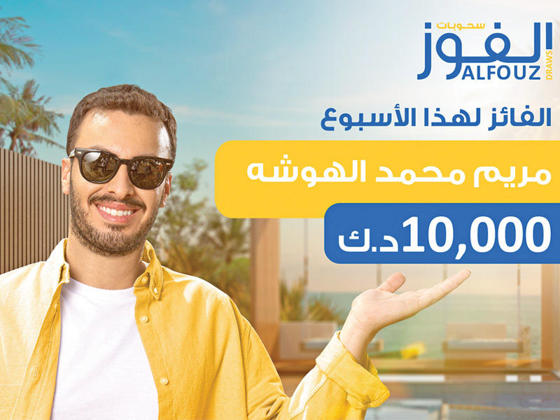 أعلن البنك الأهلي الكويتي فوز مريم محمد الهوشه في السحب الأسبوعي لحساب "الفوز" للجوائز، بجائزة نقدية قدرها 10000 دينار، والذي أقيم تحت إشراف وزارة التجارة والصناعة، وتم الإعلان عن اسم الفائز أمس.وحساب "الفوز" للجوائز، هو حساب الجوائز الأول من نوعه، والذي يتيح لعملاء البنك الأهلي الكويتي فرصة الفوز بجوائز ومكافآت كبرى، ومن خلال الحساب يحظى عملاء البنك بفرصة الفوز بمبلغ 10000 دينار ضمن السحب الأسبوعي الأعلى لفائز واحد بالكويت، وكذلك فرصة للفوز بالجائزة الكبرى وهي راتب شهري بقيمة 5000 دينار لمدة 10 سنوات، وتجدر الإشارة إلى أنه سيكون بمقدور كل من عملاء "الأهلي" الجدد والحاليين الاستفادة من هذه الفرصة الفريدة في حالة توفر رصيد في حسابهم بمبلغ 100 دينار فقط.