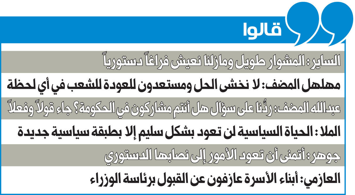 خلال الغبقة الرمضانية لـ "كتلة الخمسة"، برز العديد من التصريحات النيابية المطالبة بحل مجلس الأمة، والدعوة إلى انتخابات مبكرة، سواء من بعض أعضاء الكتلة أو من خارجها من النواب الذين قدموا لتهنئتهم بالشهر الفضيل، مع تأكيدهم أن الحل بيد صاحب السمو أمير البلاد، وسط تشديد على ضرورة معالجة الفراغ الدستوري الناتج عن استقالة الحكومة وعدم البت فيها. وأكد النائب مهند الساير، أن "رئيس الوزراء الحالي، أحد الأسباب التي أدت إلى الوضع الحالي وتراجع مؤسسات الدولة، وهي خطوة من خطوات الإصلاح، والمشوار لايزال طويلاً، ومازلنا نعيش فراغا دستوريا، والمشهد لايزال مؤلماً وضبابياً، والدور علينا أكبر في هذه المرحلة، ولا أتوقع حل المجلس بقدر ما أتمنى أن يتم حله". وأضاف أن "الاحتقان الحاصل لا يمكن معالجته بدون الحل، ورحيل كل شخص ساهم في وصولنا إلى هذه المرحلة، ونؤكد أن الحل بيد سمو الأمير، ونحن نبدي رأينا كنواب، فخلال سنة ونصف نعيش في صراع، وكله من وقت أهل الكويت".وأشار إلى أن "كل نظام انتخابي تدافع السلطة عنه، وعندما ترى أن الناس تجاوزوا عقبته، تسعى إلى تغييره، حتى تعود الفئة المحسوبة عليها"، معربا عن أمله "في تغيير المشهد، وأن تقرأ السلطة الشارع وردة فعل الناس، وحالة الإحباط التي وصلوا إليها. وسنتصدى لهم، وأبشرهم حتى لو الحكومة عدّلت الدوائر الانتخابية، فإن الشعب سينتخب الإصلاحيين".